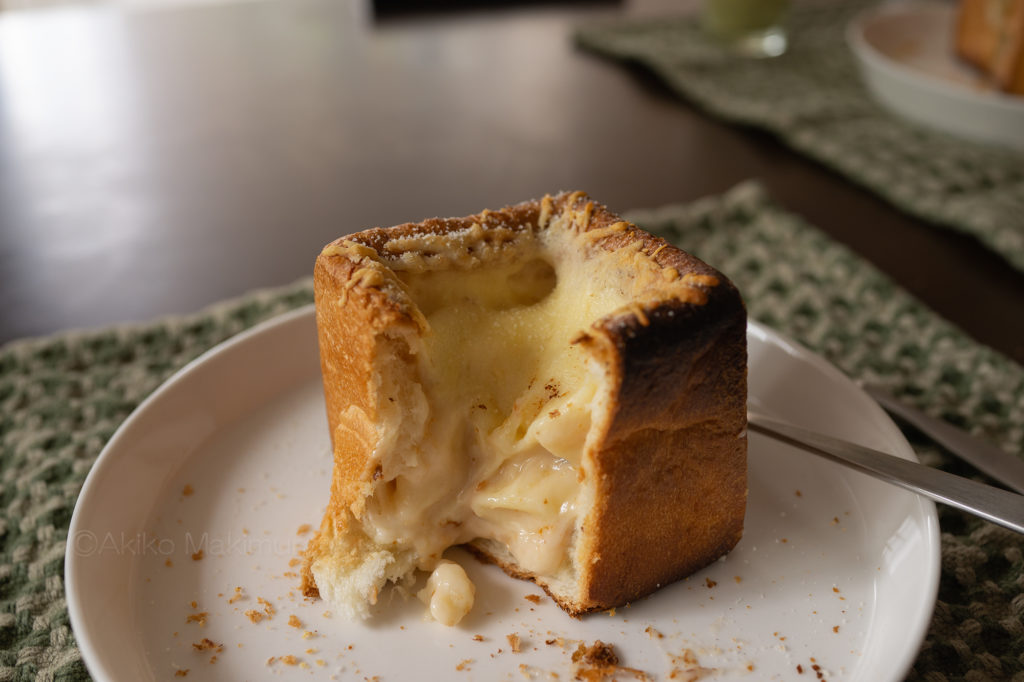 ナイフを入れると、外側の皮がぱりぱりしているのがいいところ。