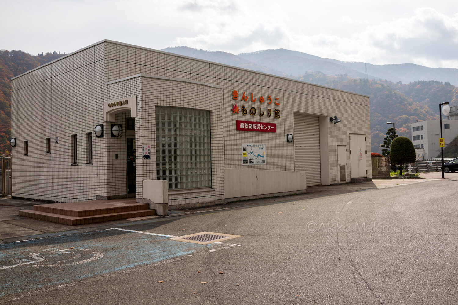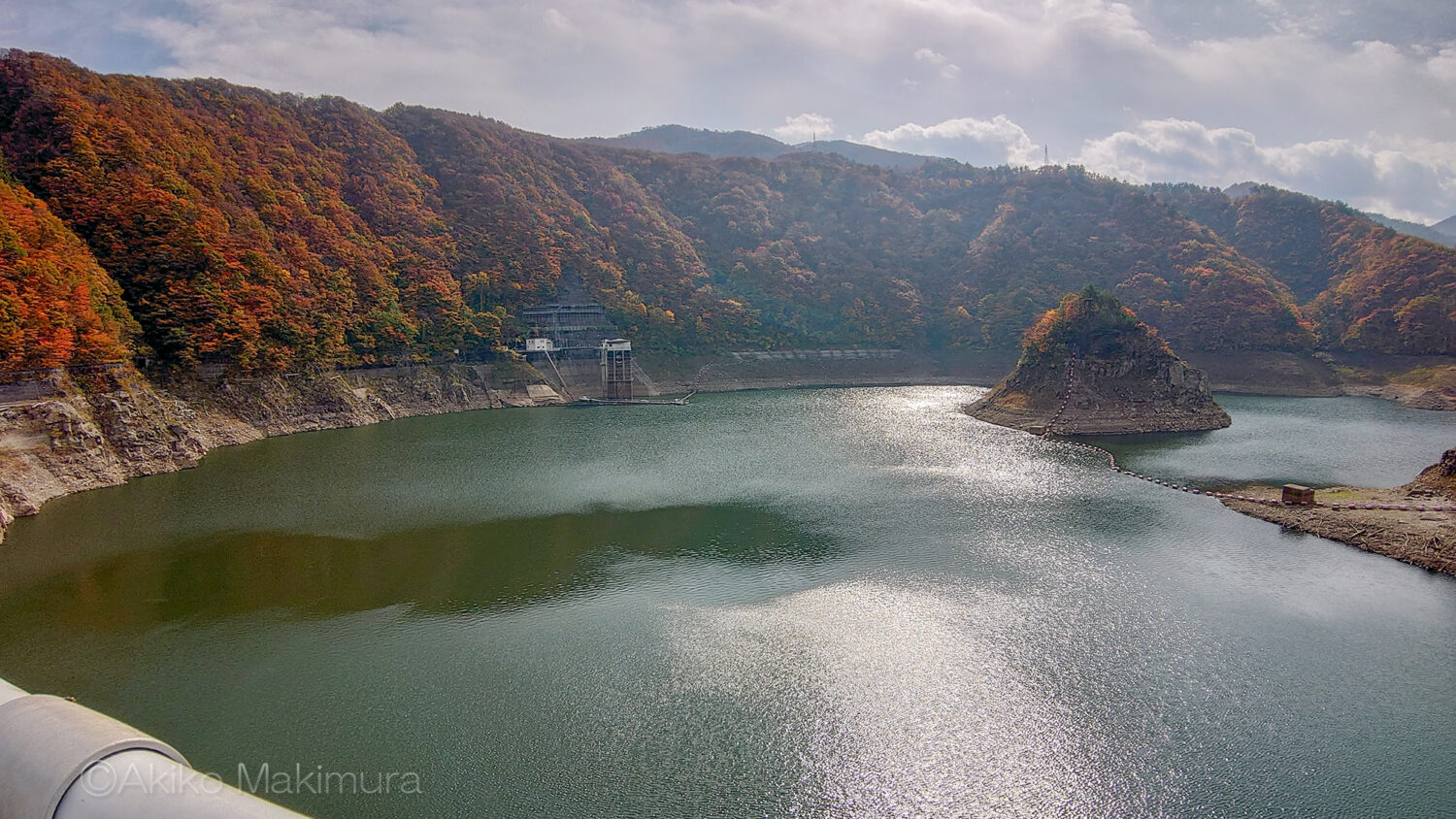 天端を引き返し、管理支所のある方向に行く。もう少し先に、錦秋湖を展望できる場所がある。