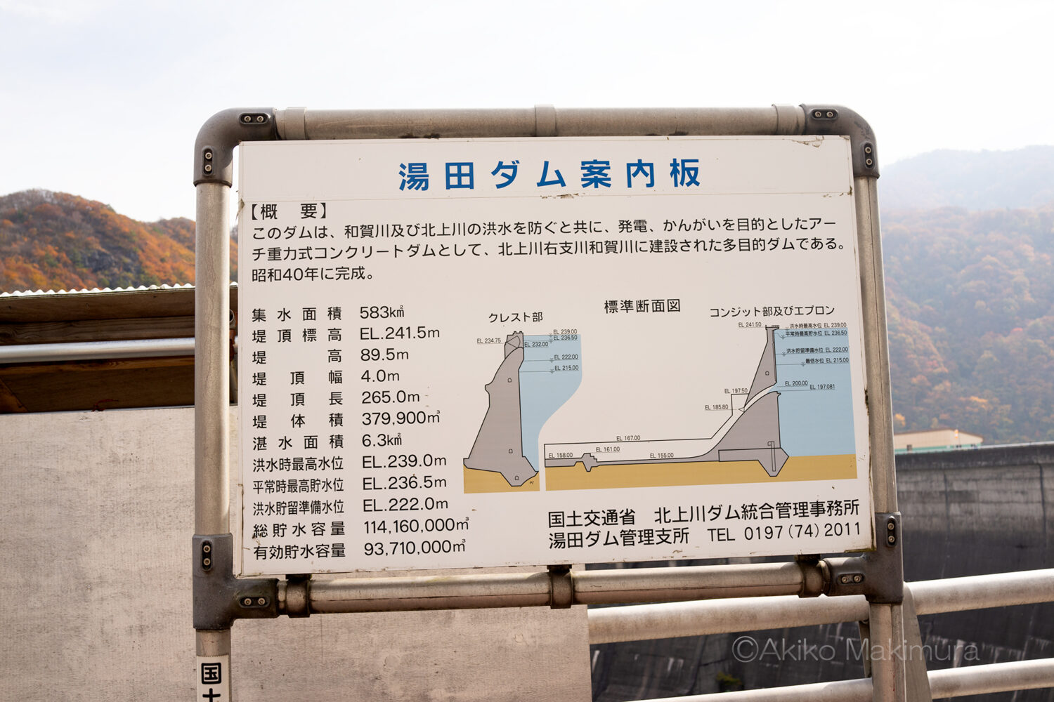 途中には湯田ダムの概要を示す案内板がある。