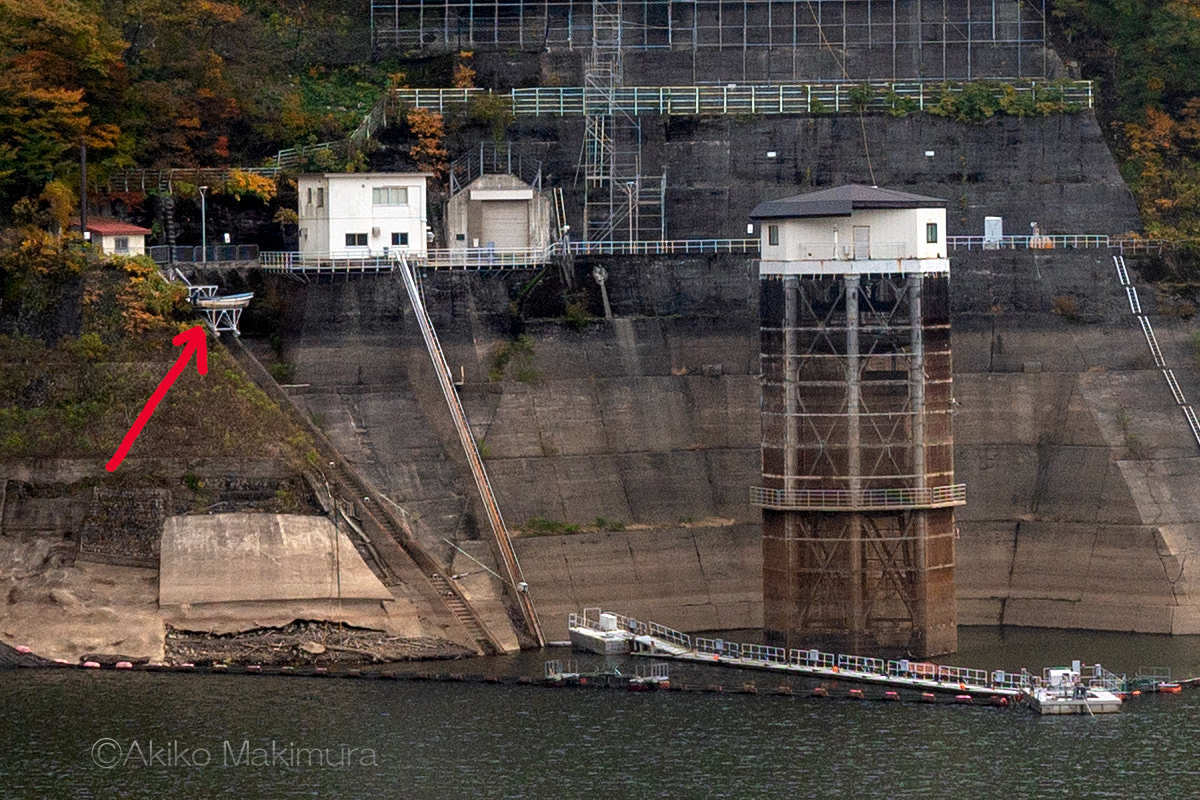 途中の道からは、ダムの内側を見ることができる。水位が低い時でしか見られないものが、そこにはあった。それぞれの具体的な役割は私にはわからないが、なんだかわくわくする。