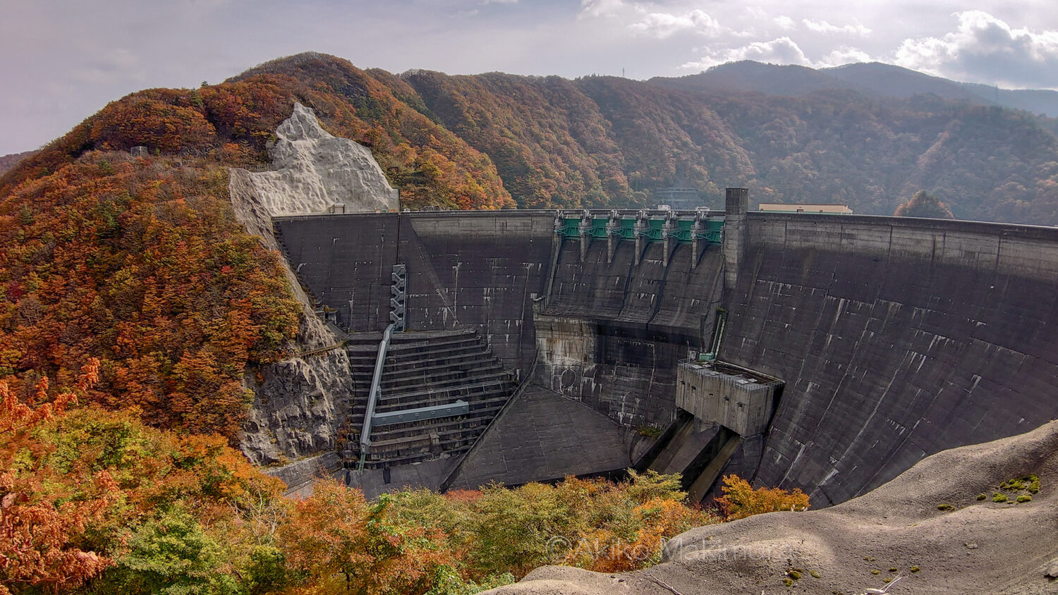 重力式アーチダムを見たのは初めてで、弧を描く横方向への広がりに圧倒される。私の撮影した写真では到底そのすごさをお伝え出来ないのが残念だ。