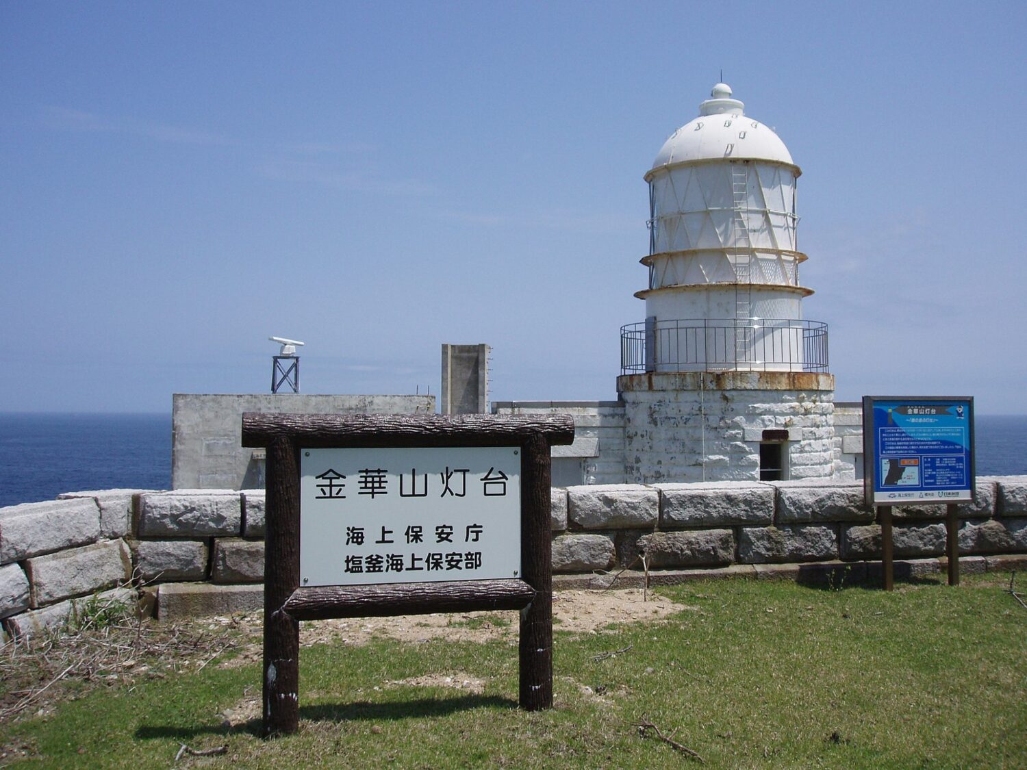 金華山灯台は、1876年(明治9年)初点灯、石造りの古い灯台だ。日本の灯台の父、リチャード・ブラントンが設計した(ブラントンは完成前にイギリスに帰国)。形としては禄剛埼灯台(石川県珠洲市、1983年(明治16年)初点灯)と似ている。