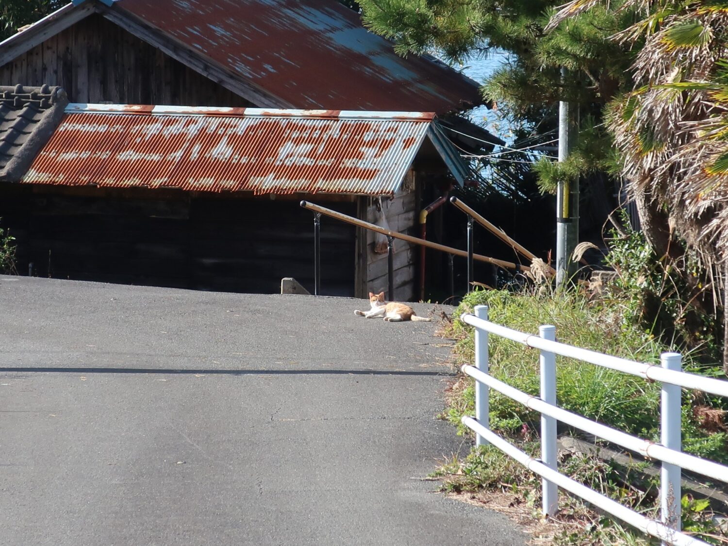 網地島で最初の猫だ。ゆっくり近づいたが、逃げられてしまった。ということで、灯台への道に戻る。