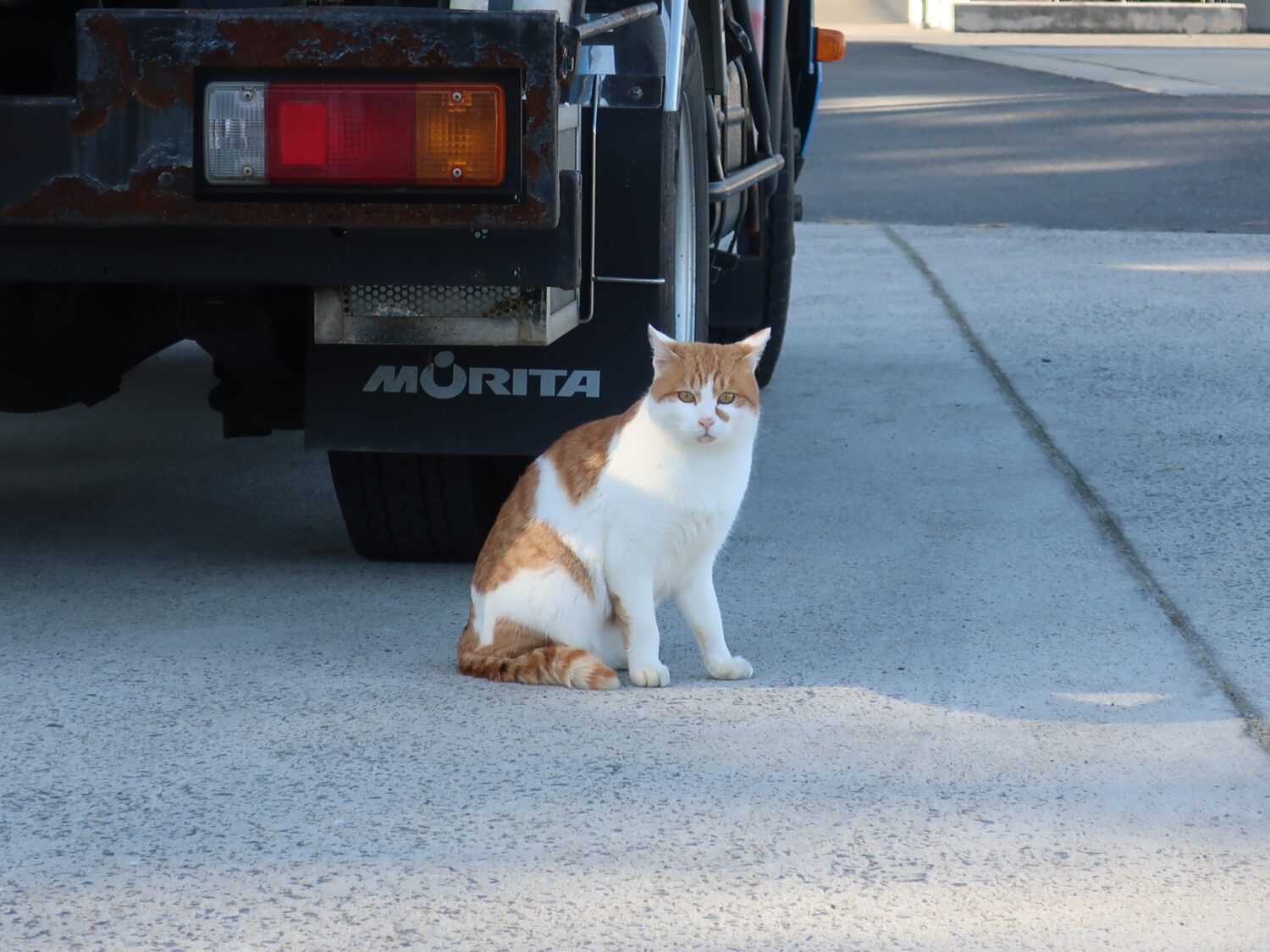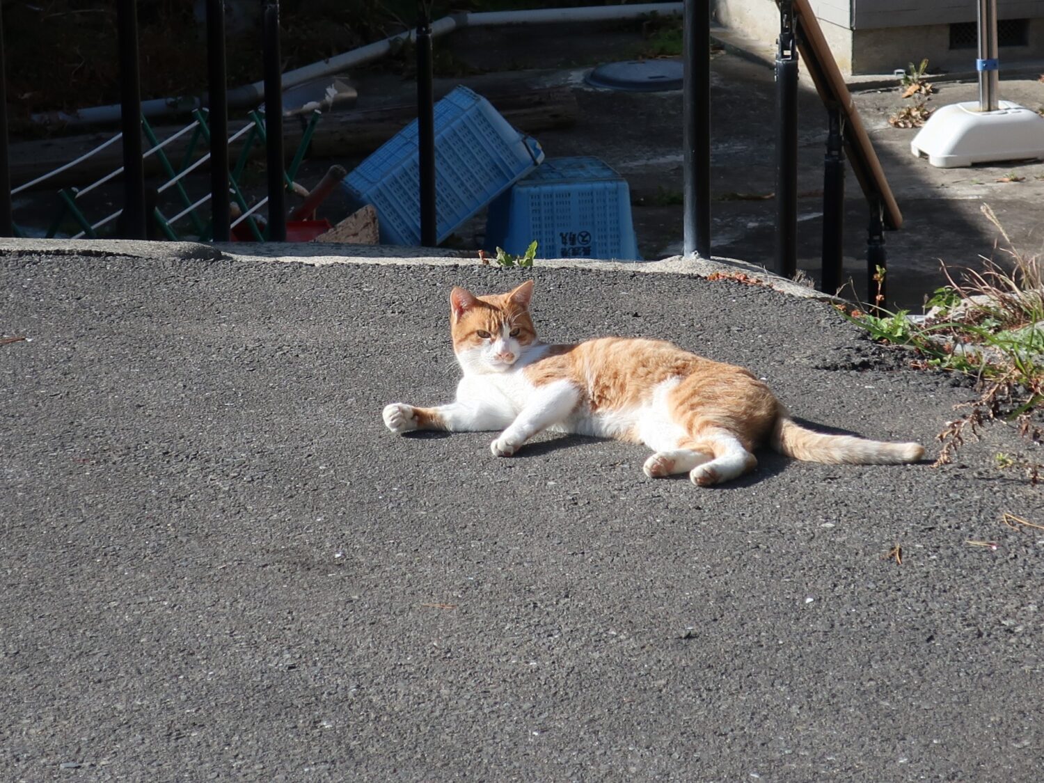 ではそろそろ引き上げよう。  港まで戻ったら、2匹目の猫に出会った。涙模様がカワイイ。
