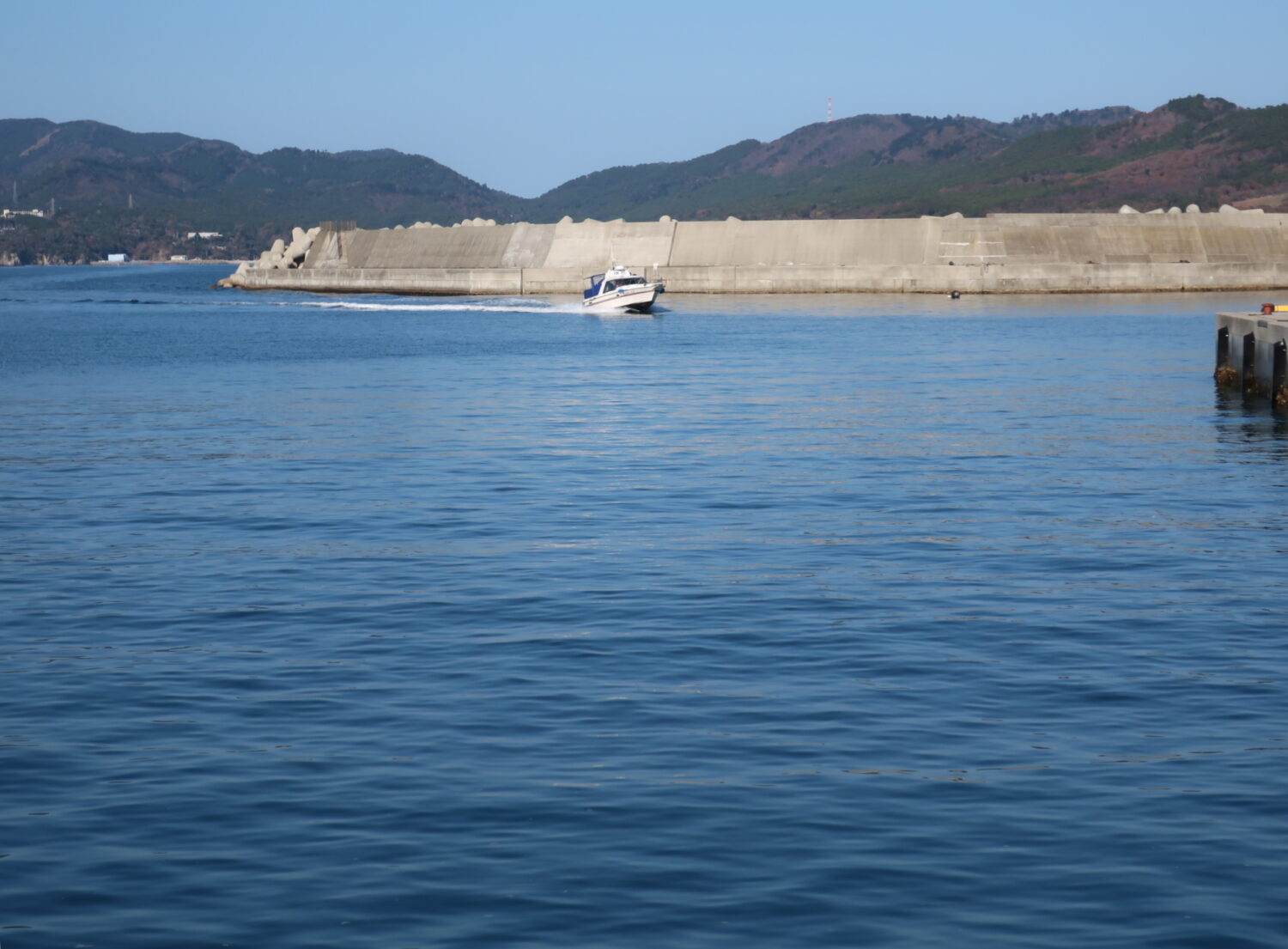 猫好きな人なら知っている田代島は、人口より猫の数が多いという「猫島」だ。2つの島に行くのは時間が厳しいので、今回は残念ながらパス。さらに、網地島ラインの運行ダイヤがうまくあわないので、今回は鮎川から網地島の長渡(ふたわたし)港まで「海上タクシー」(モーターボート)を使った。