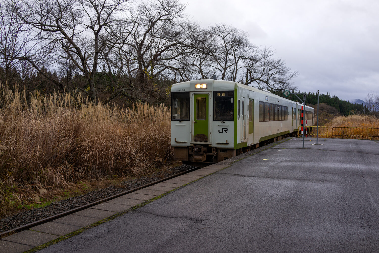 そんな場所では1日に通る列車の数も少なく、車両編成も1~2両だ。車両には、個々の車両を区別するための識別文字が書かれているが、「キハ」と数字を組み合わせた文字を見かけることが多い。