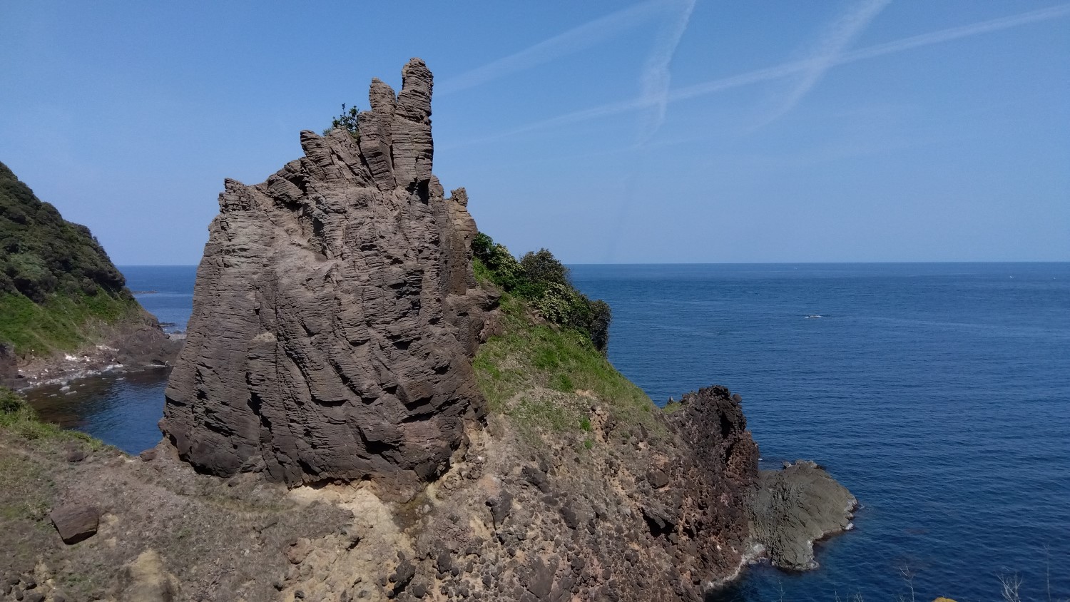 せっかくなので、「多古鼻灯台は右」標識の方向に進み、「多古の石柱」を見た。柵とかがないので、あまり崖の近くには寄らないようにしたが。