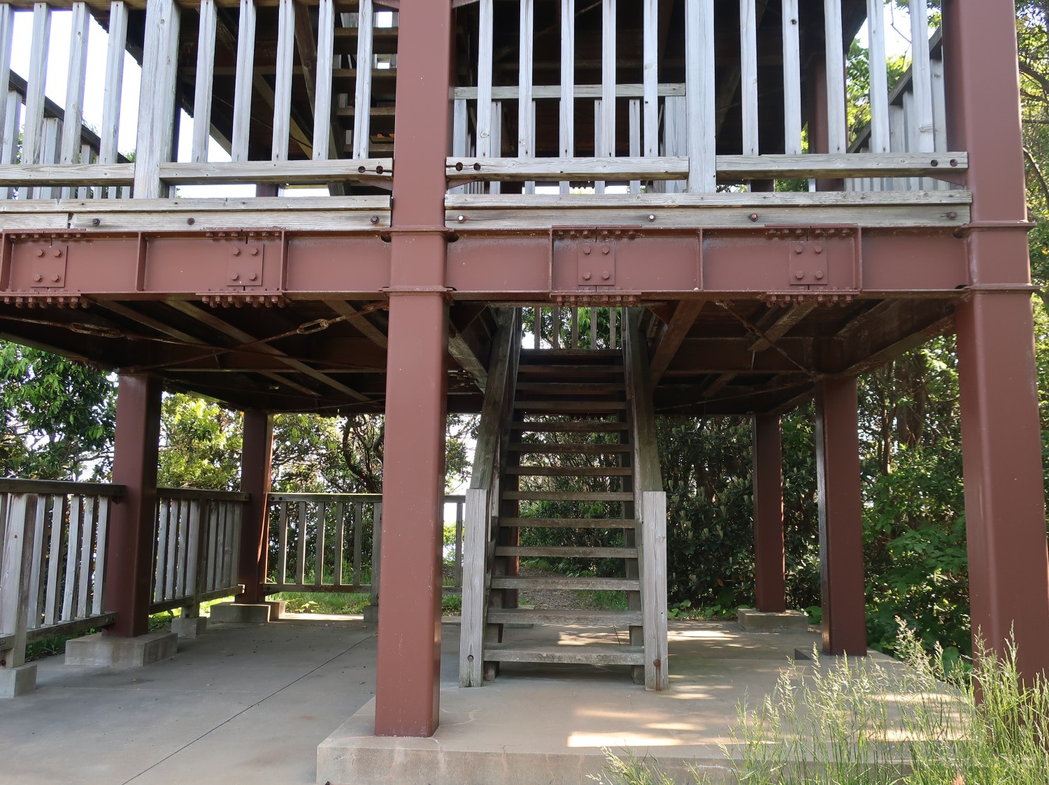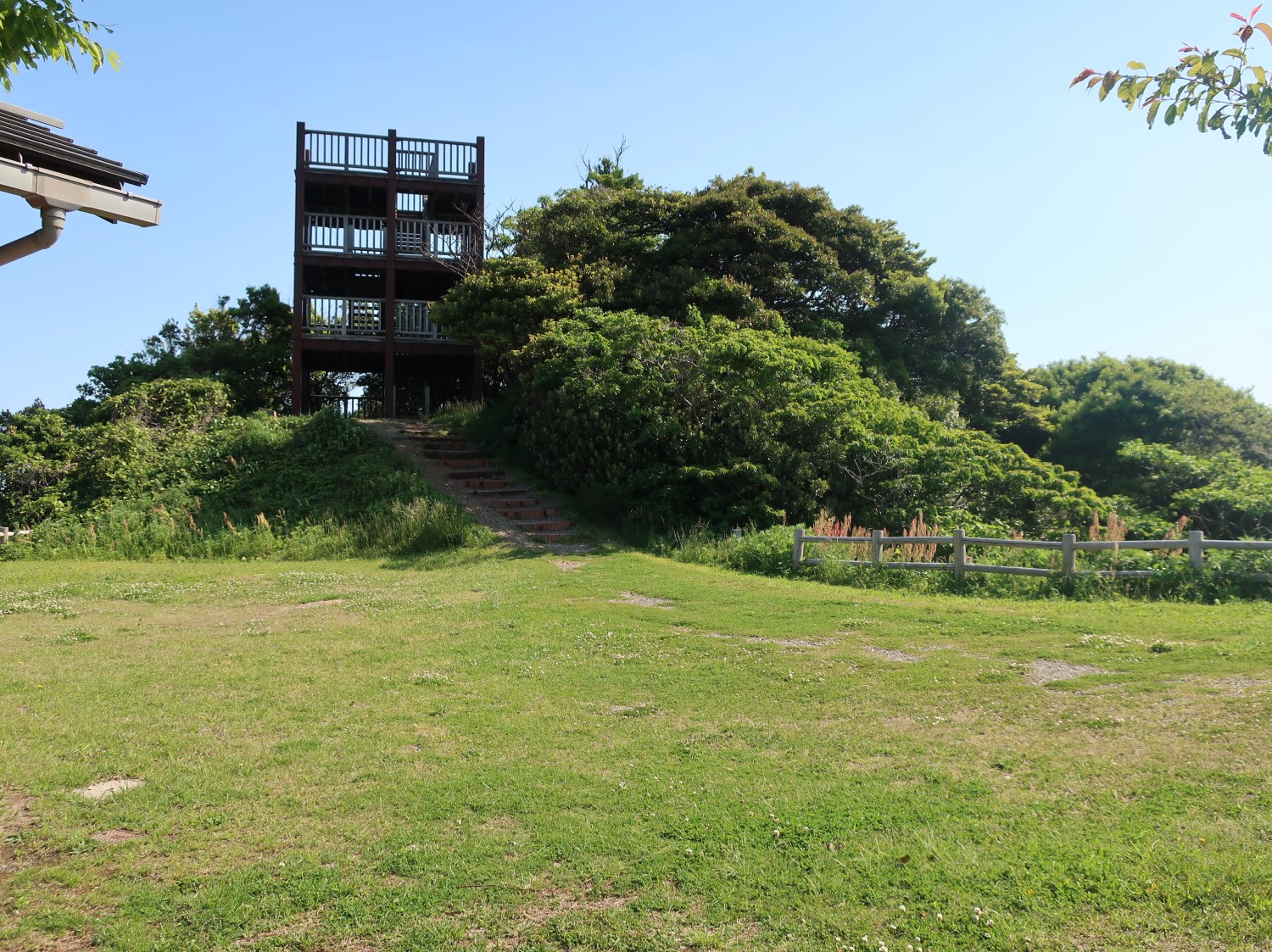 灯台へは展望台を通り抜けて行くのだが、まずはちょっと上ってみよう。香住港城山灯台でちょっと悩まされたハチがここにもいる。