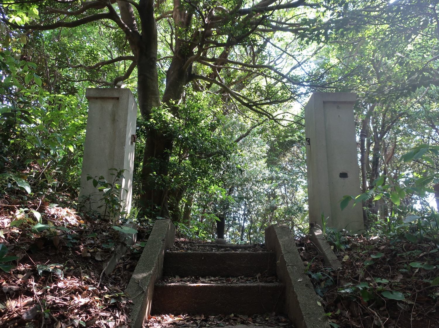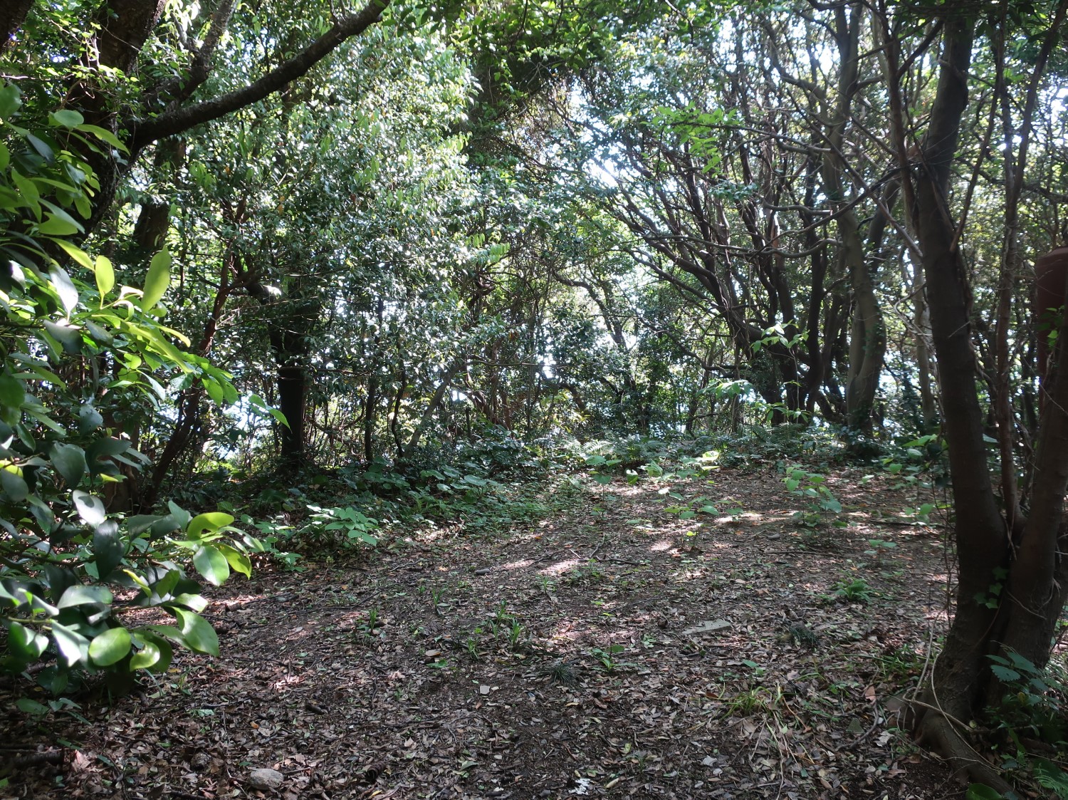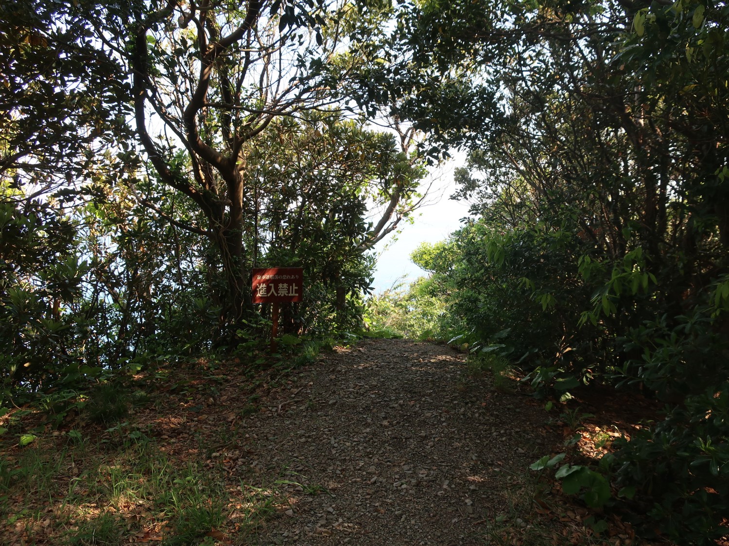 山道に入ってから灯台までは200mぐらいだが、地図によれば70mぐらいの高低差がある。これはきつい。この山道が今も生きているかどうかはわからないが、仮に行けるとしてもかなりハードな道のりに違いない。
