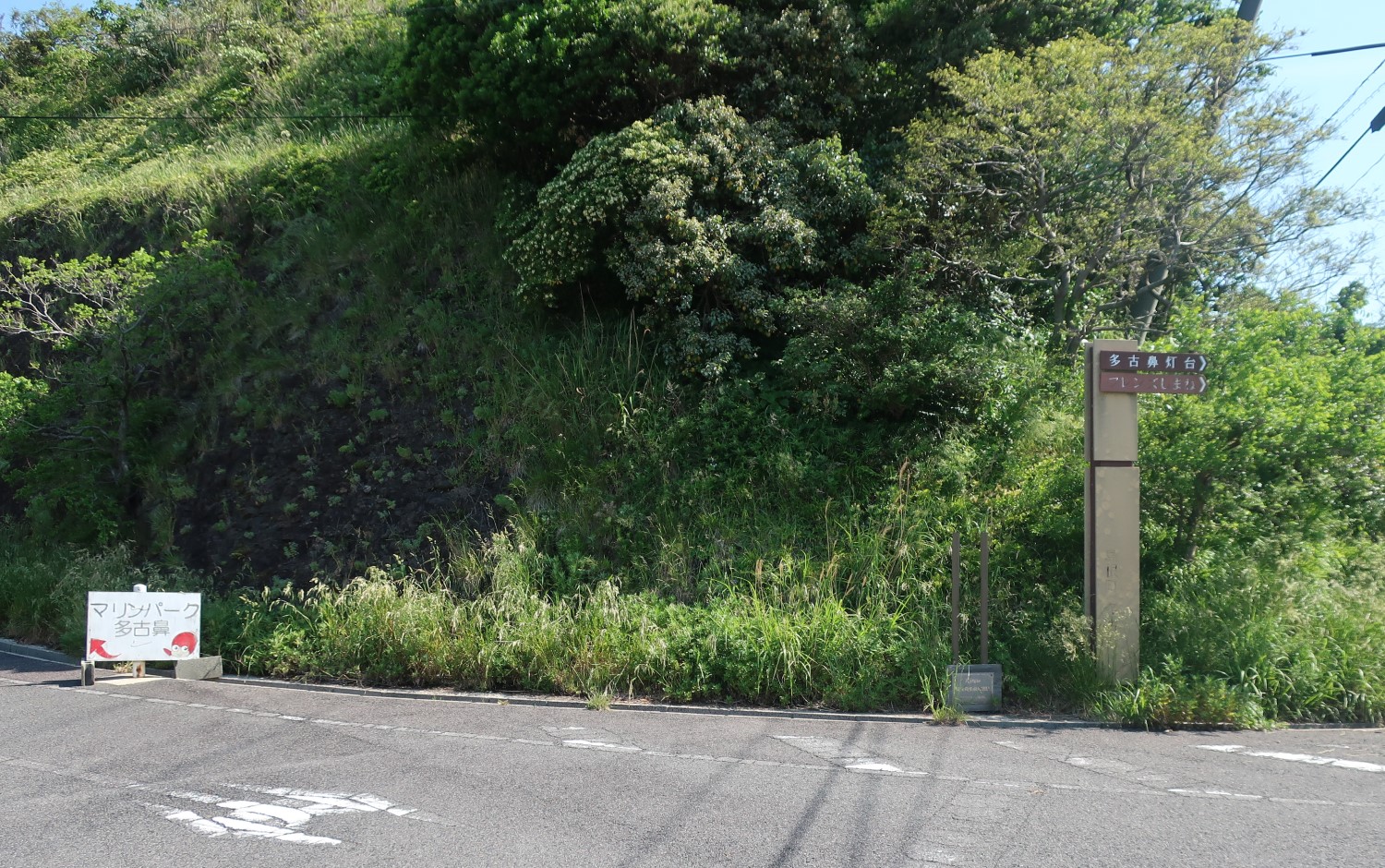 「右へ行け」という標識は、マリンパーク多古鼻ができる前に立てられたものだろう。そのときはどのように灯台に行ったかというと、沖泊に向かう途中から山道(地図の破線)を通ったのだろう。