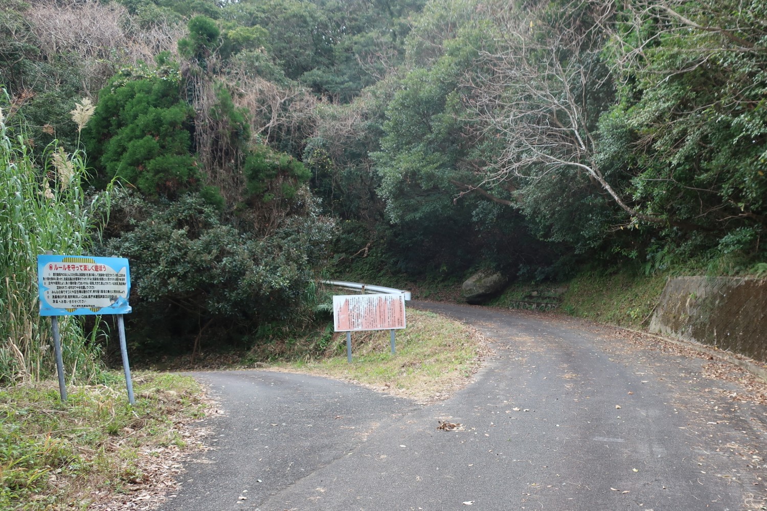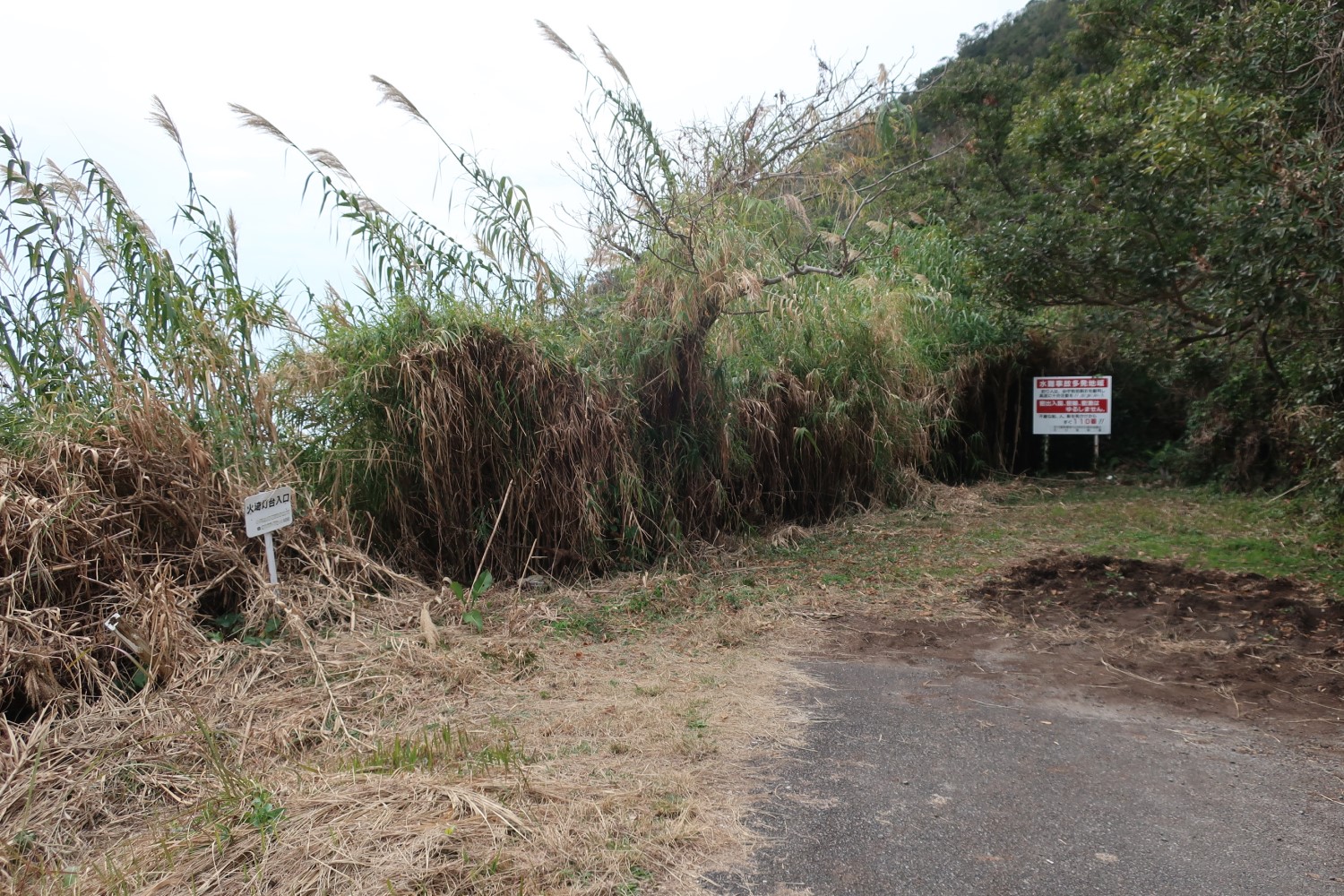 左に写っているのが火埼灯台に向かう道の案内板だ。