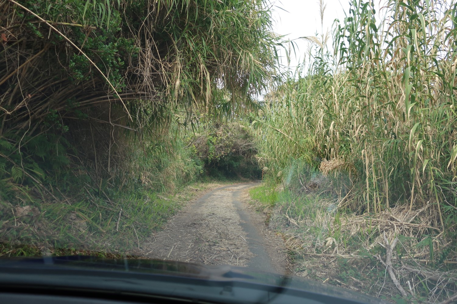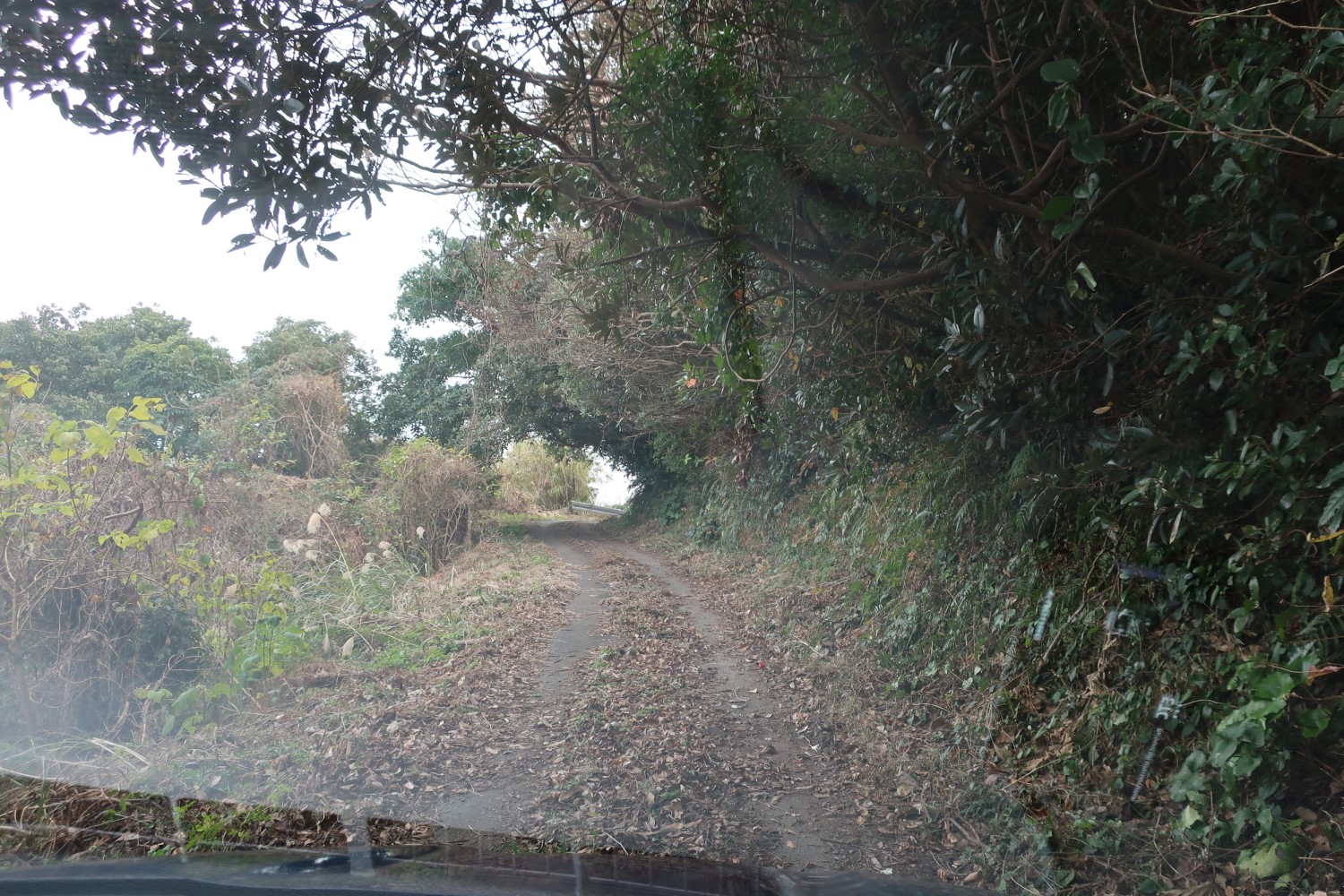この先はさらに道が狭くなる。ちょっとすれ違いは難しい。道の終わりまでに3カ所ぐらい、すれ違いができそうな場所があったが、崖から落ちないように注意が必要だ。