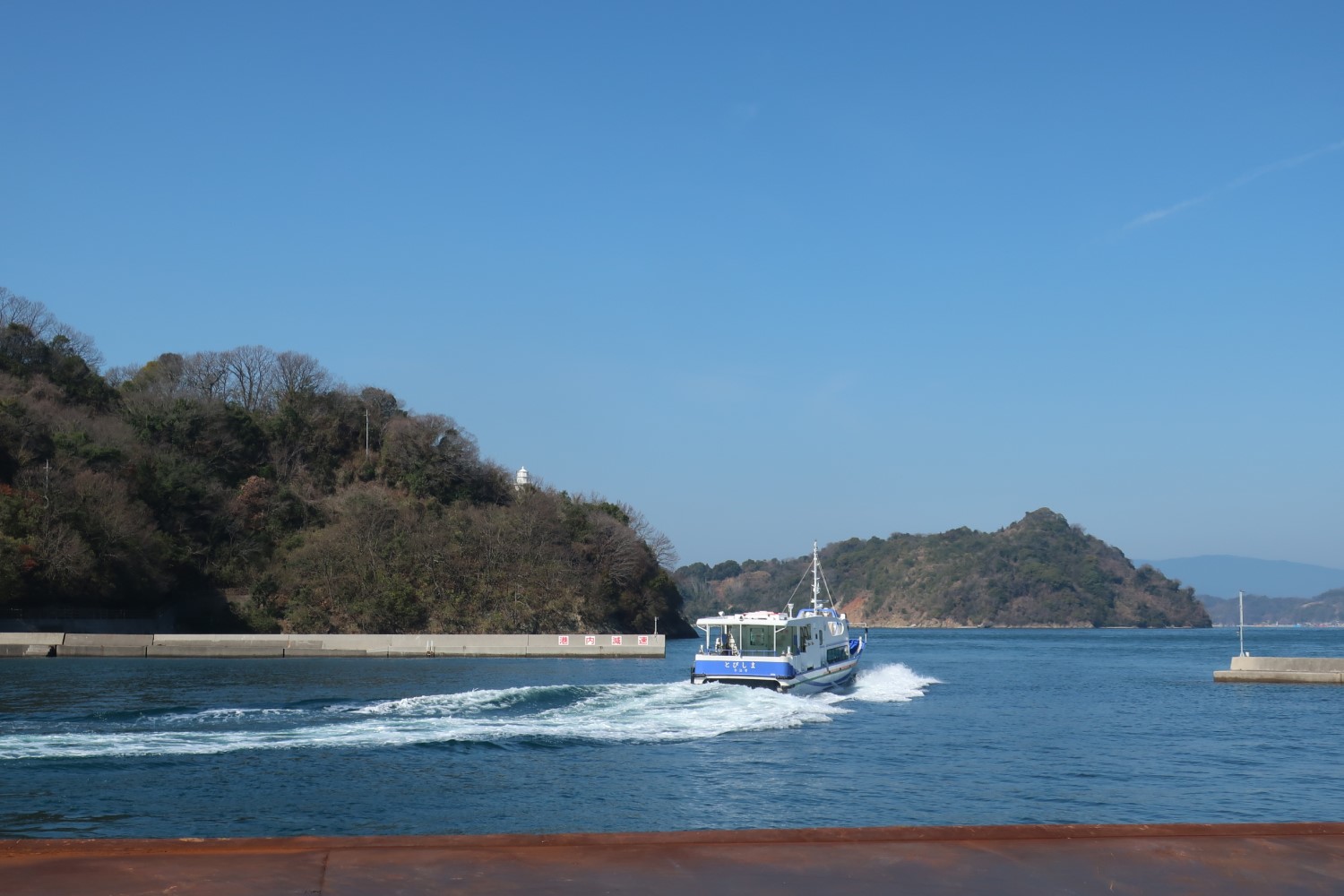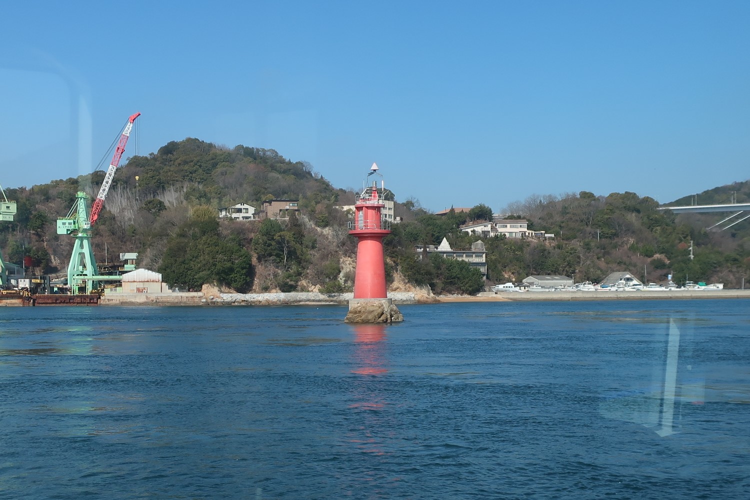これらは船の左舷から見た景色で、右舷には馬島(うましま)が見えている。小さい島に4つも灯台がある馬島については、別記事を参照してほしい。
