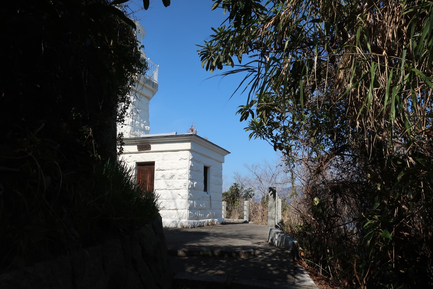 灯台の脇に階段があり、それをのぼると、一段高いところに平らな広場がある。おそらく退息所があったところだ。
