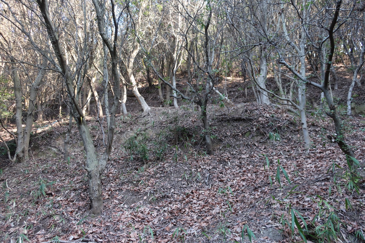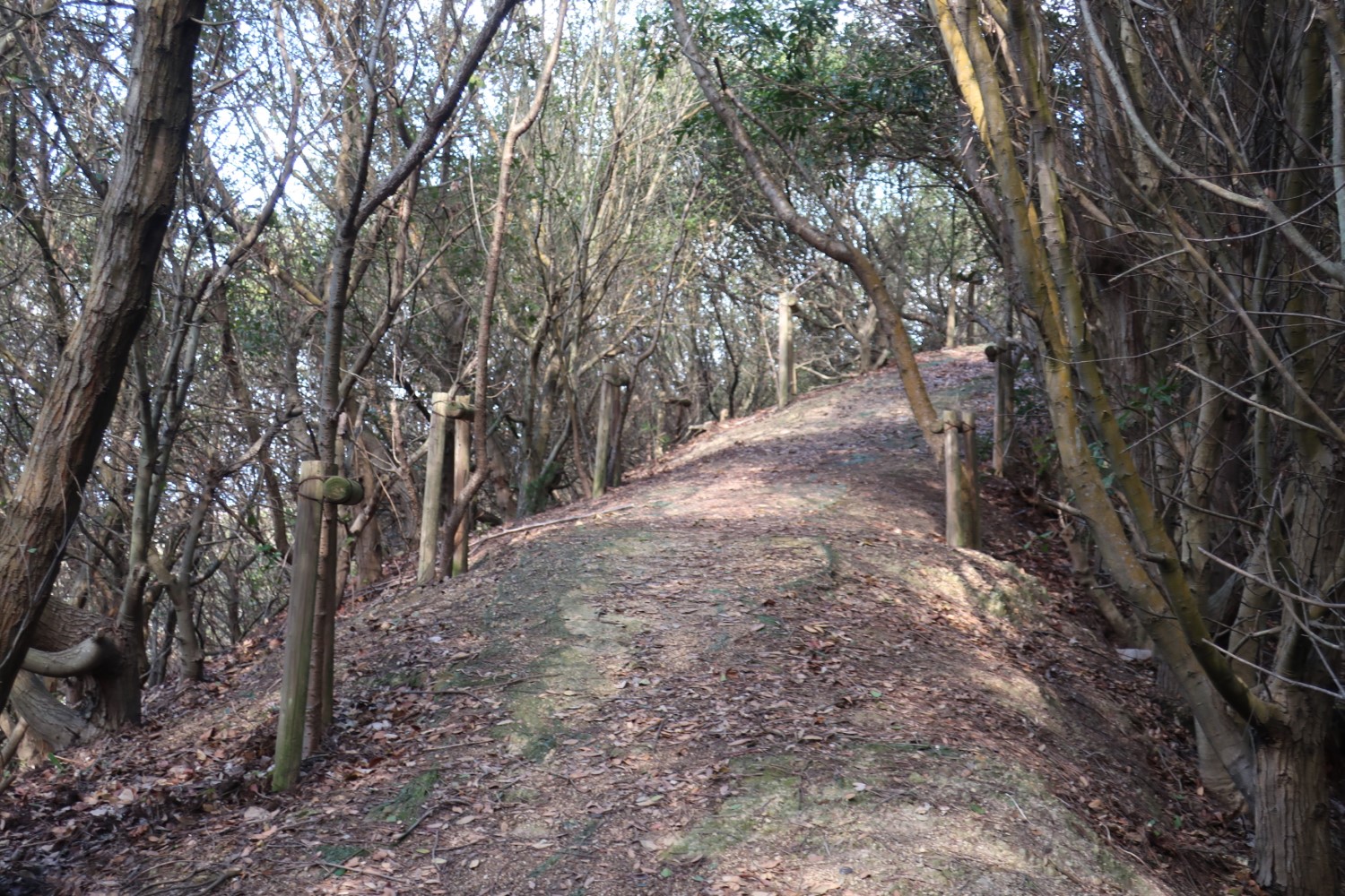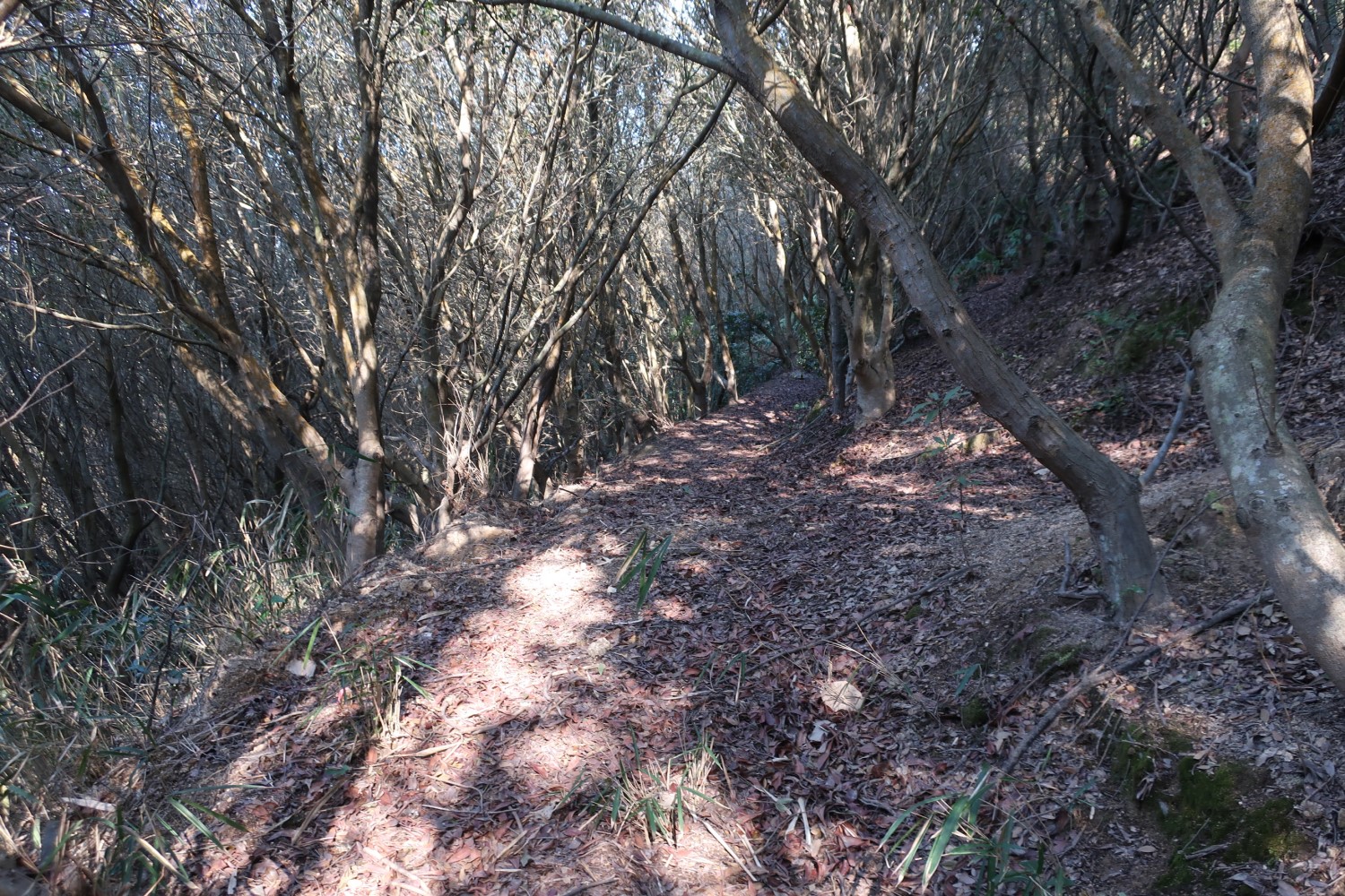 落ち葉が多く、道かどうかがわかりにくいが、道だろうがなんだろうが上に向かってのぼっていくと、尾根に着いた。