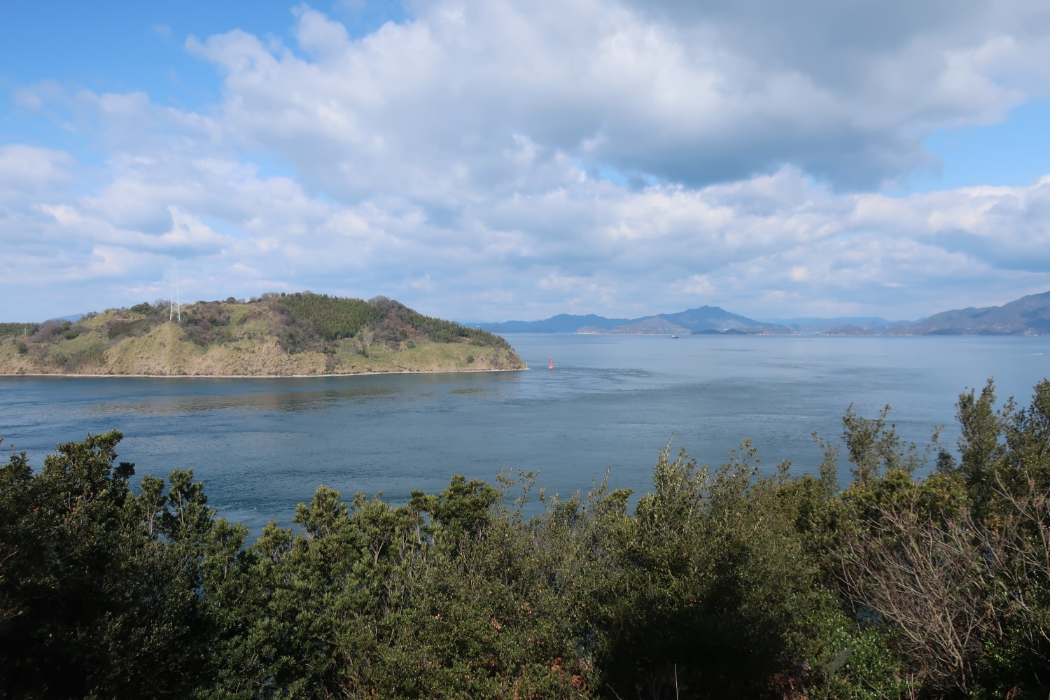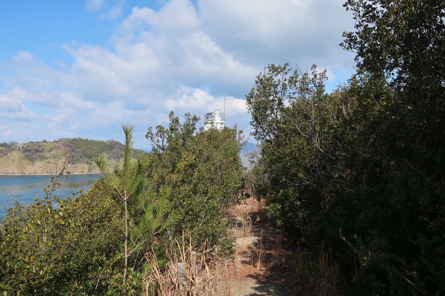灯台の先には、馬島から来た方向が見える。左手前にあるのは小島(おしま)。