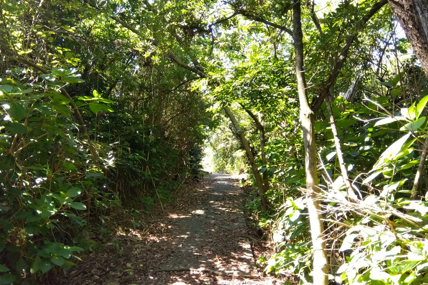 小道に入るとすぐに下り坂になる。舗装されているから歩きやすい。