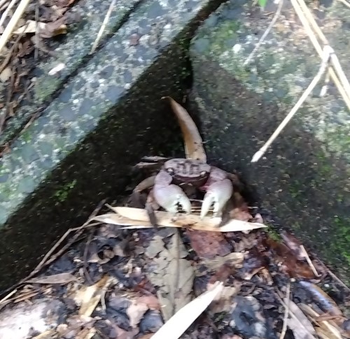 カニがいた。木の根元にいくつも開いている穴が、カニのすみかのようだ。