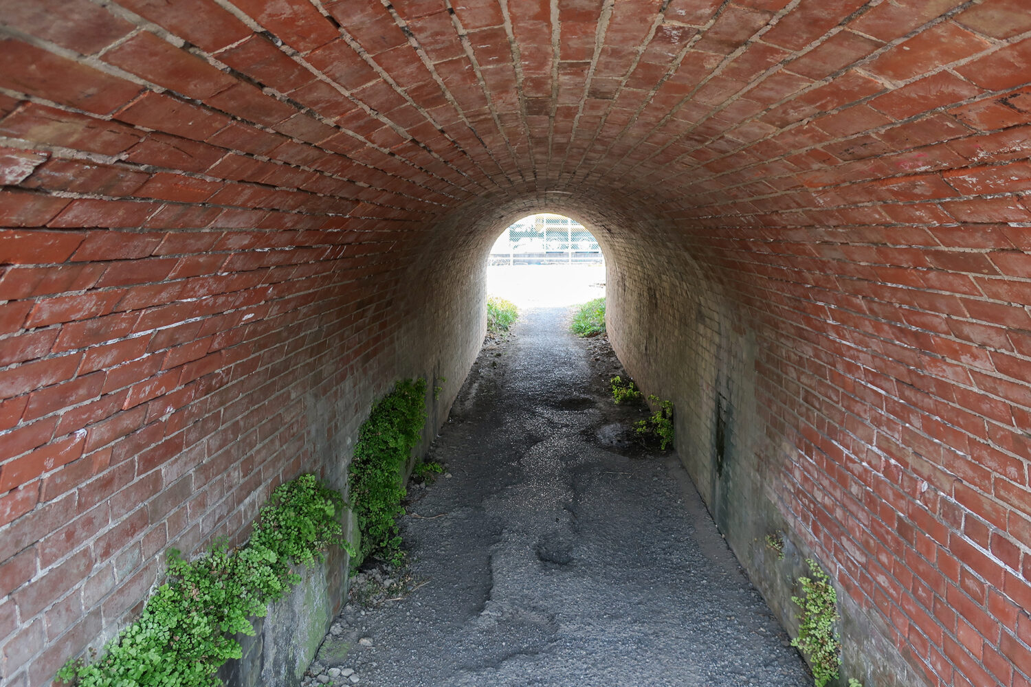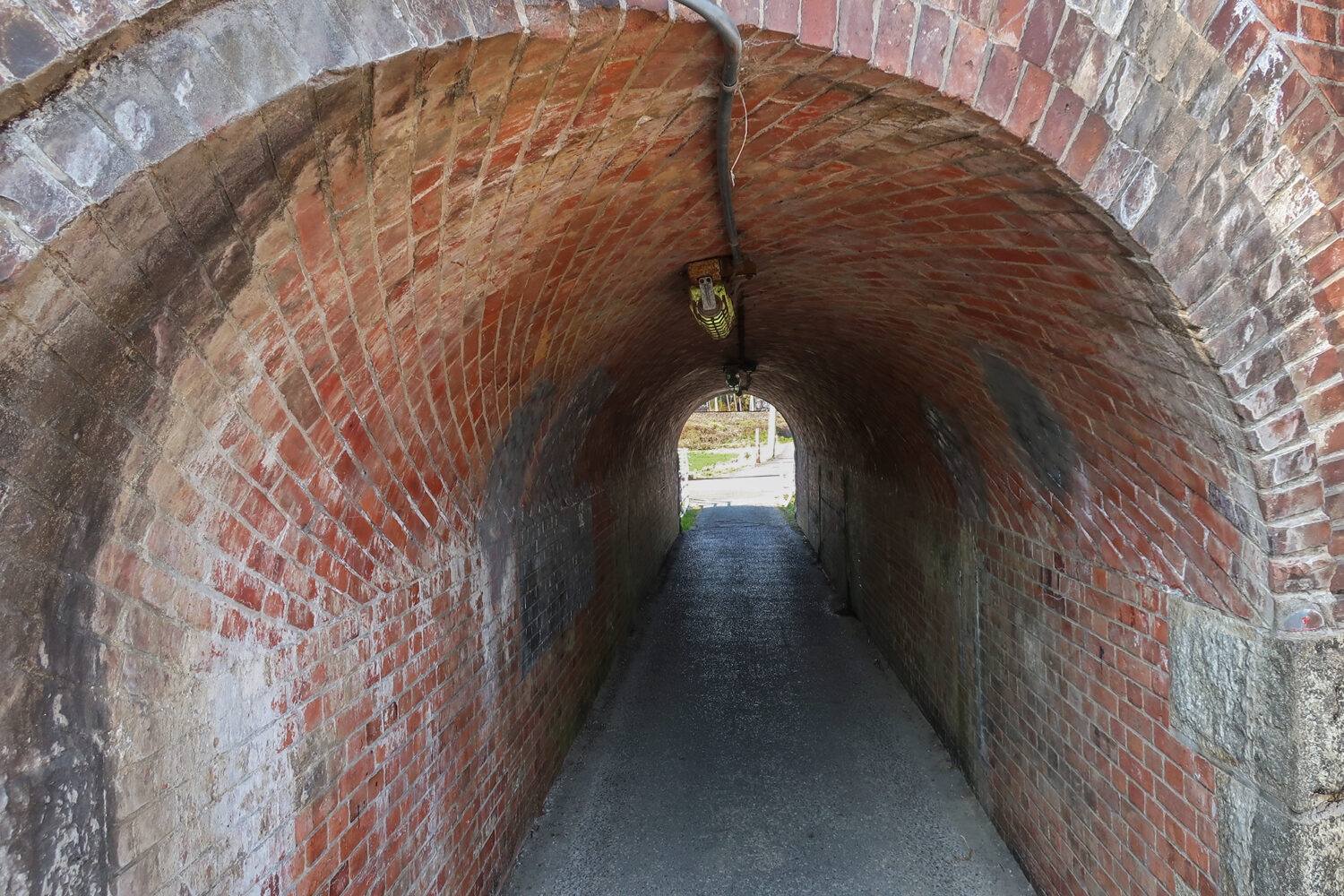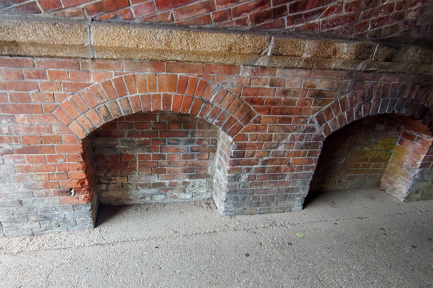 トンネル内の下部は、水平にレンガが積まれている。連続したニッチも意匠として美しい。(トンネルのニッチといえば、一般的には非常用の退避空間を指す。でもここでは「ニッチ」と呼ぶのがしっくりくる感じ)