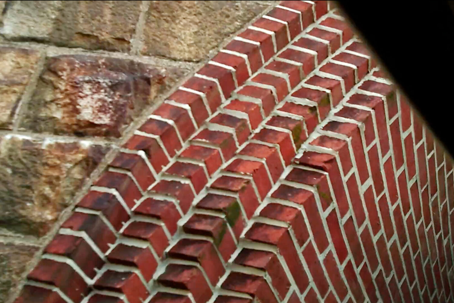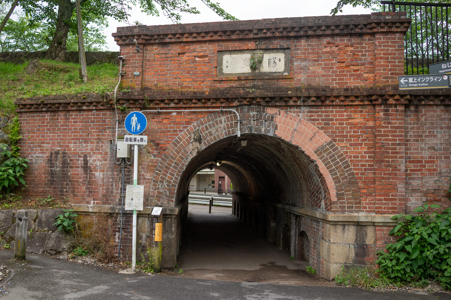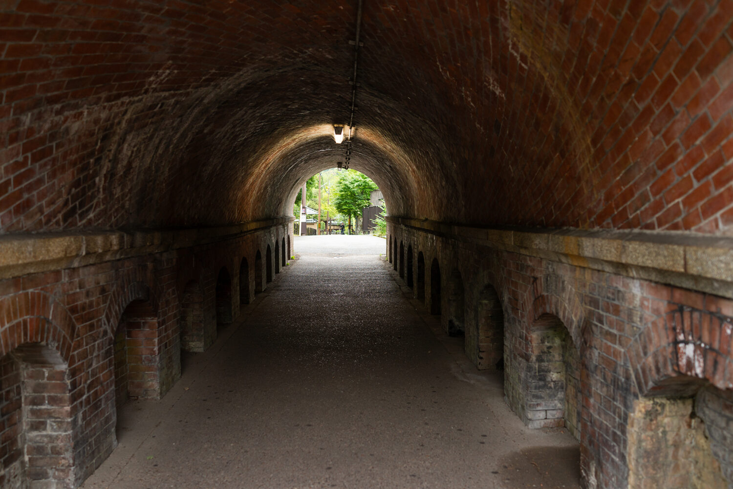 トンネル内の下部は、水平にレンガが積まれている。連続したニッチも意匠として美しい。(トンネルのニッチといえば、一般的には非常用の退避空間を指す。でもここでは「ニッチ」と呼ぶのがしっくりくる感じ)