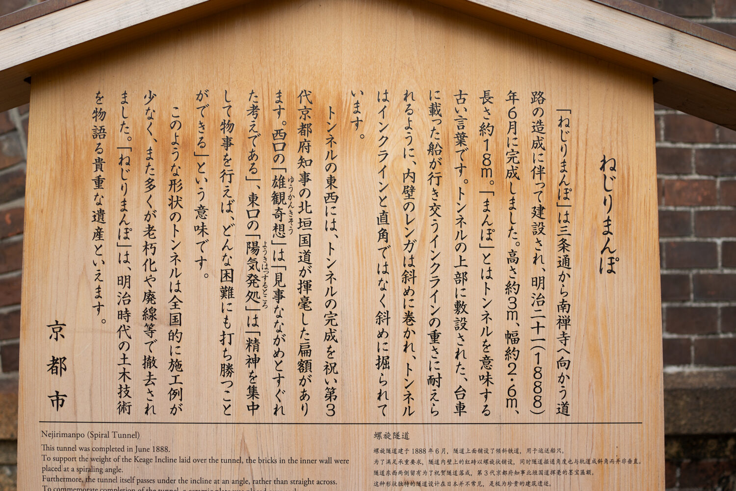 琵琶湖疎水らしく、ねじりまんぽのアーチ上部には扁額(へんがく)も設置されている。