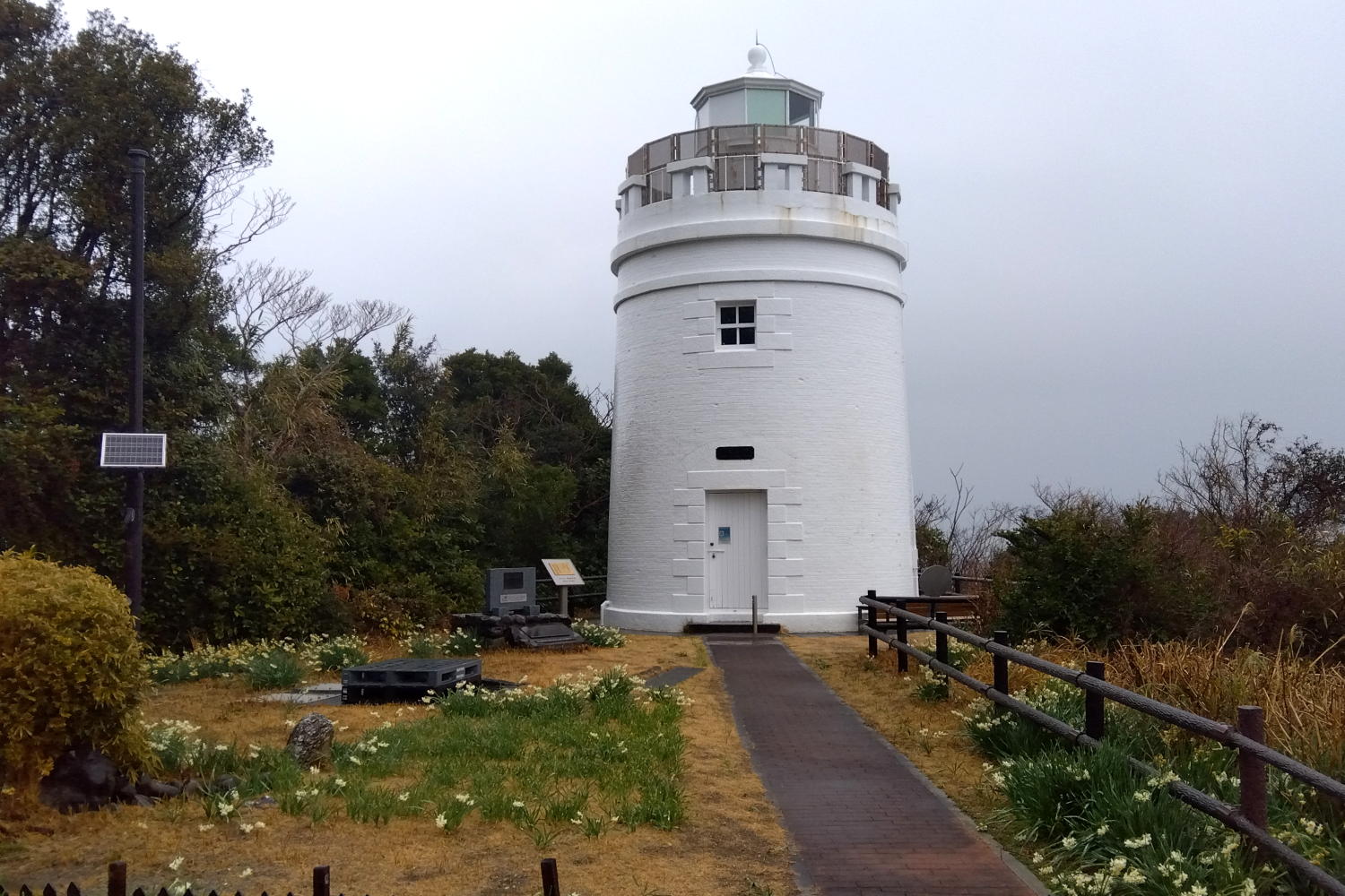 初点灯は1873年(明治6年)。それにしてもこんな太い灯塔は見たことがない。ブラントン設計なのに得意の半円形付属舎がないし、レンガ造だし、灯籠の形もいわゆる「ブラントン式」ではない、非常にユニークな形状だ。ちょっと微笑ましい感じ。