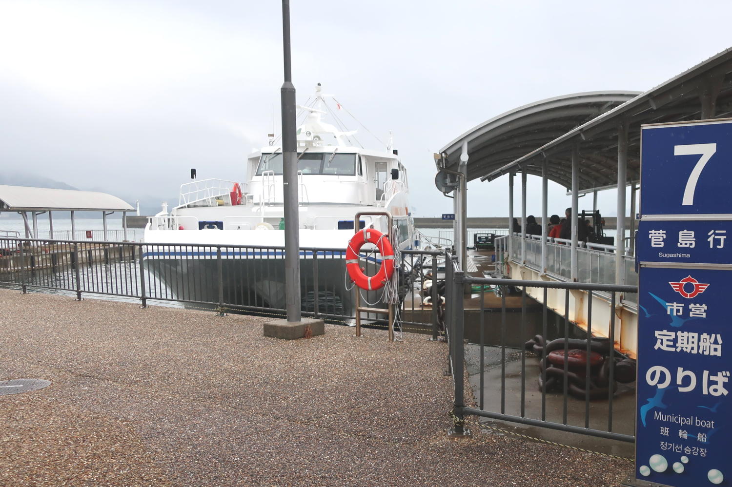 菅島に行ったのは、午前中に答志島の島ヶ埼灯台に行ったあとの午後。いったん鳥羽マリンターミナルに戻り、もう一度鳥羽市営定期船に乗る。弱い雨は降り続いている。
