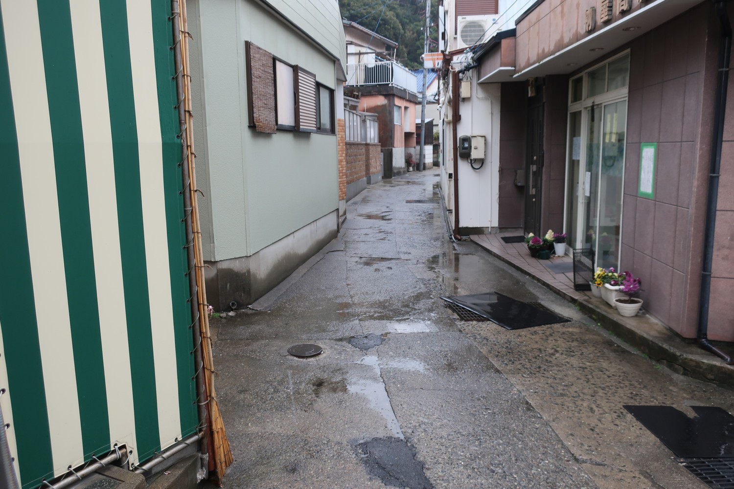傘をさしながら、スマホで現在地を確かめながら、巻き付けた上着が落ちないようにしながら、ときどきカメラを構えながら、急いで歩くのは難しい。外側は雨で、内側は汗で、どっちもびっしょりだ。