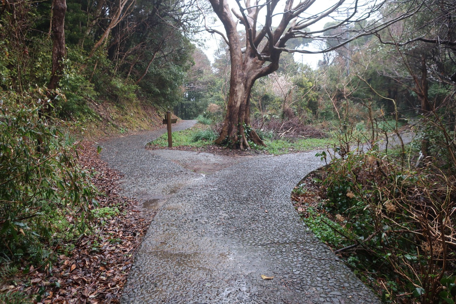そこそこ長くてきつい道をのぼり切ると、最初の分岐があった。