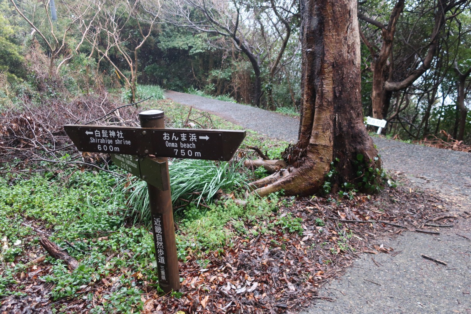今回行った菅島灯台、神島灯台、島ヶ埼灯台(答志島)という鳥羽周辺の灯台のうち、この菅島灯台と神島灯台は、道がほとんどコンクリート舗装されていた。観光資源として考えられている、ということだな。
