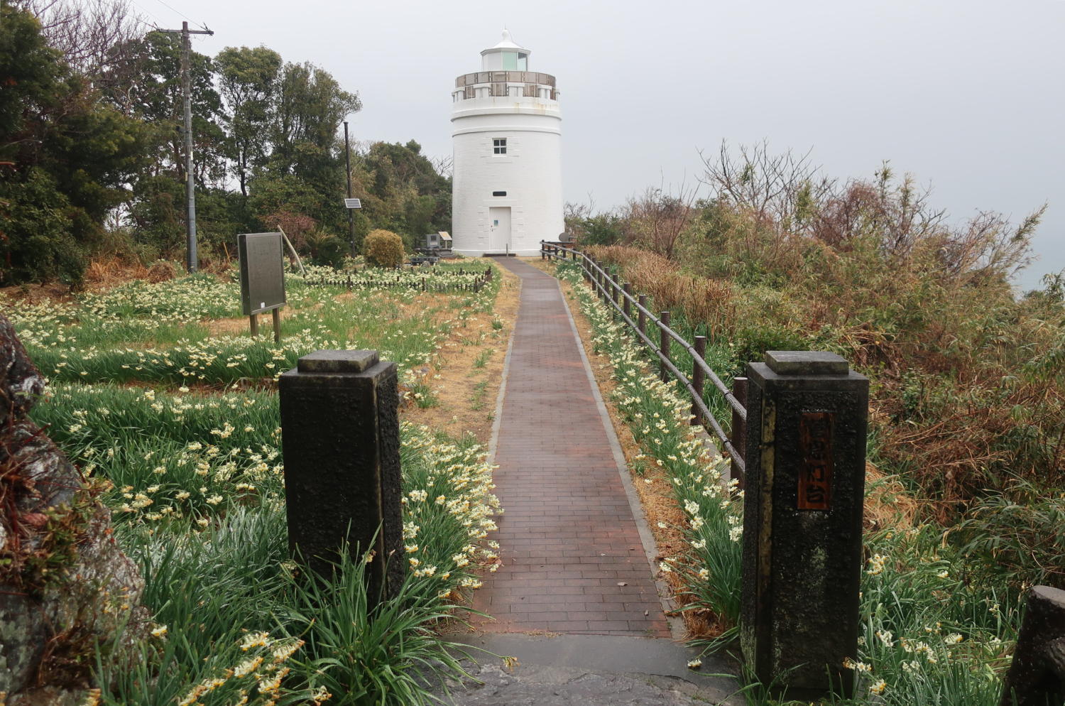 そしてすぐ先に菅島灯台があった。港から15分ちょっとと、予想より早く着いた。一面の水仙は自生らしい。