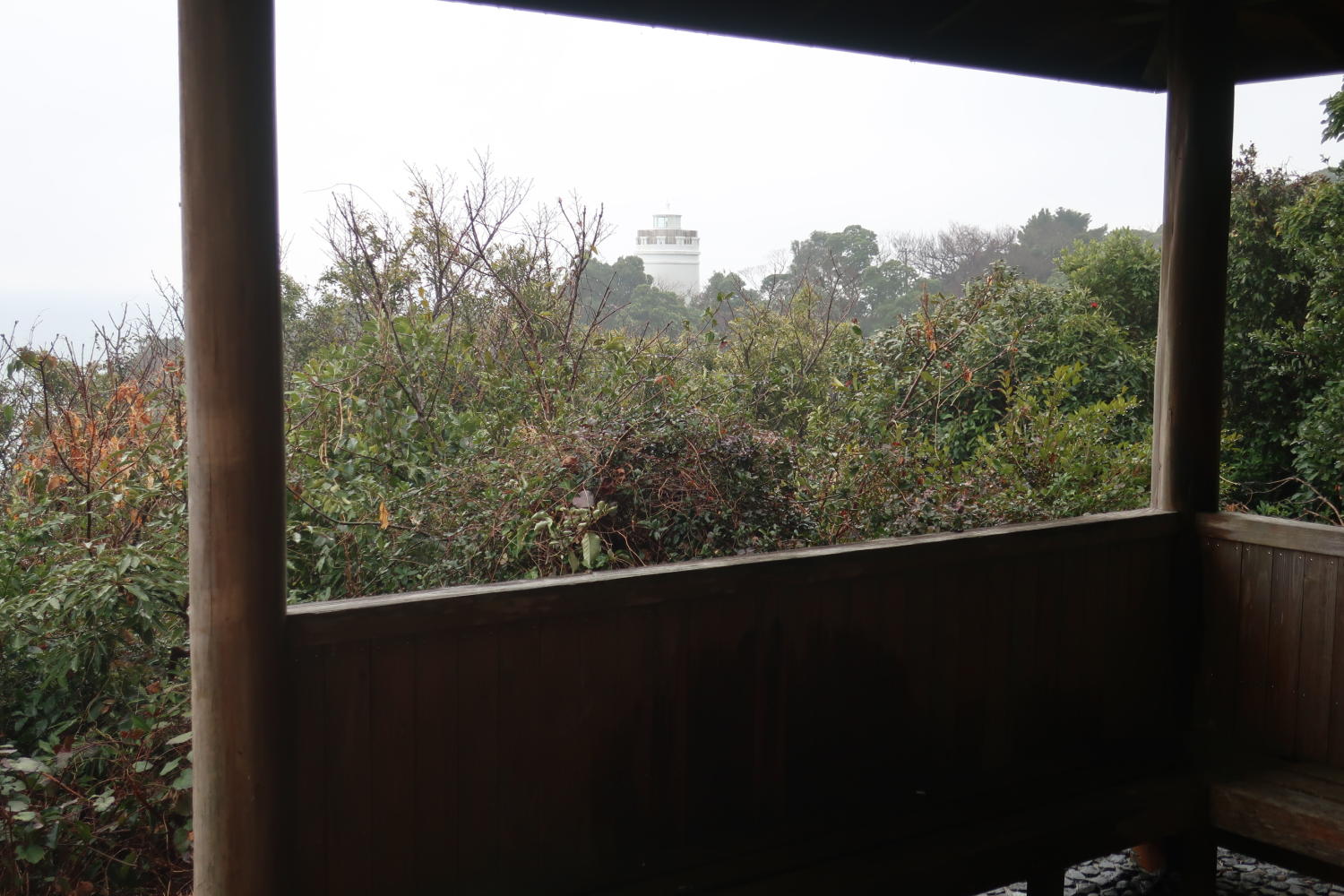 いつも訪れている灯台に比べると、手入れがされすぎている面はあるけど、ゆったりできる空間だ。この太さのせいかな。これで天気がよくて海がきれいならよかったのだが。