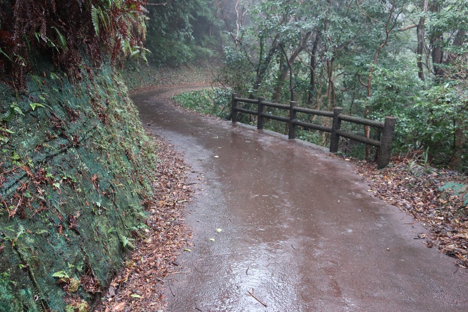 道は舗装されているし、広いし、傾斜は急じゃない。せめて傘をささないで済めば片手が空くのに。