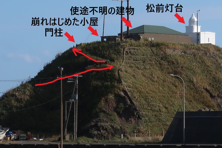 松前灯台(まつまえとうだい、北海道松前町)は、小高い山に立っているのだが、のぼり口がわからない、さらにのぼる途中やのぼった先が荒れている、という“冒険”テイストあふれるところだった。
