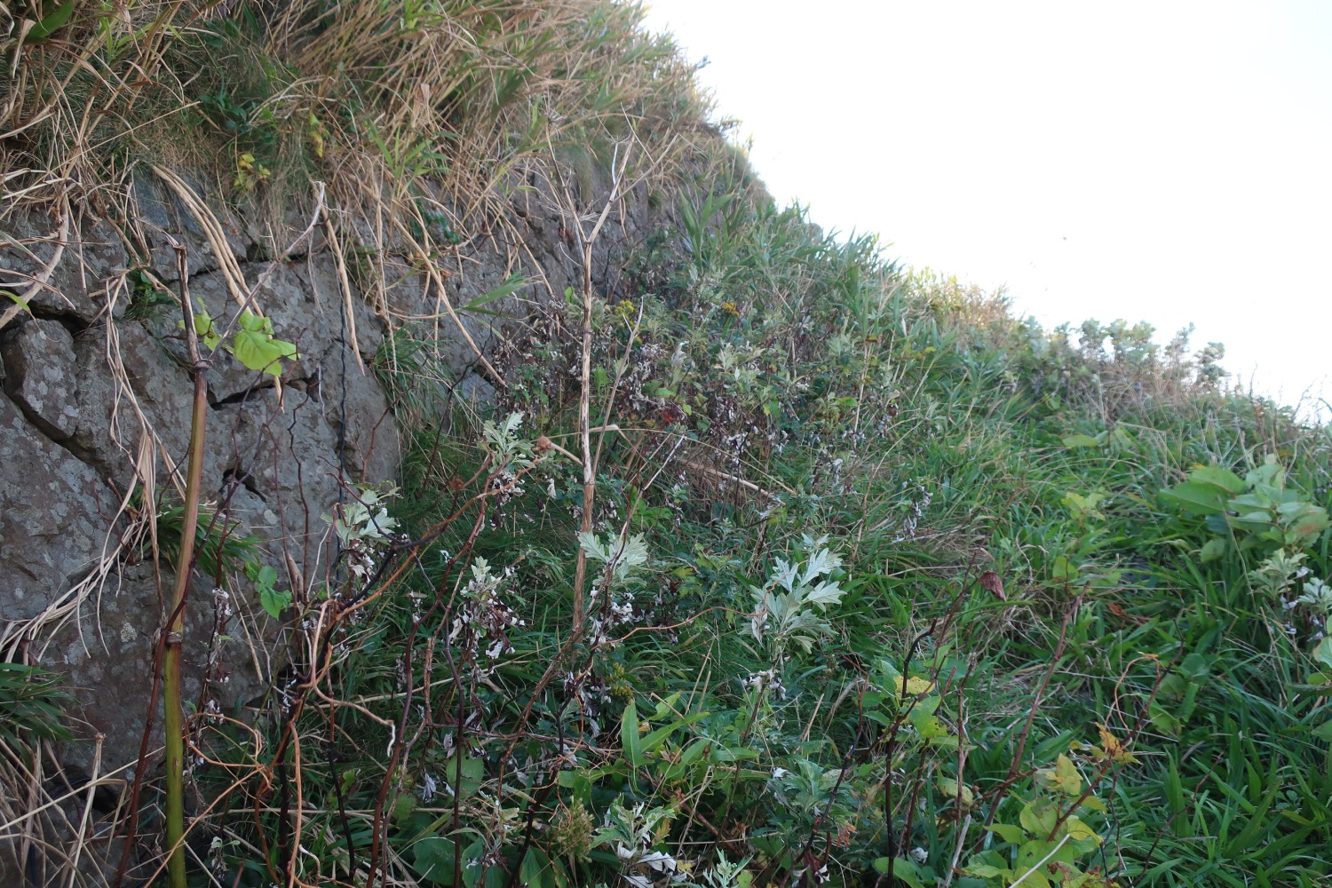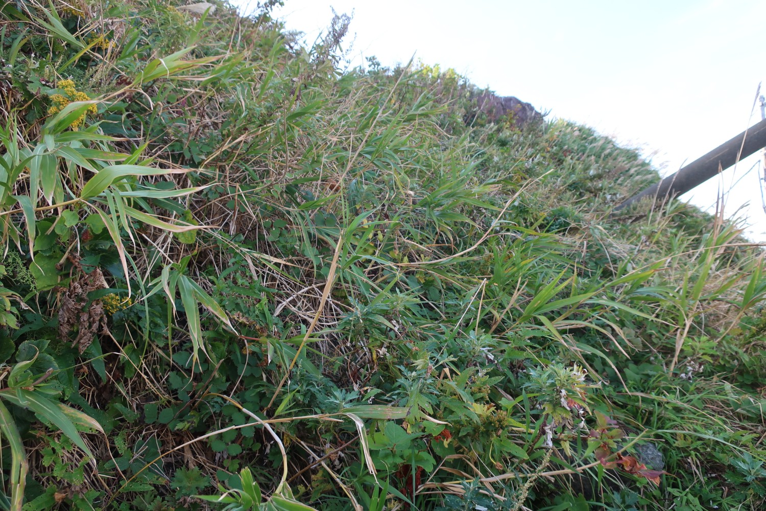 道と言うよりは、“ちょっと草が低くなっているところ”ぐらいだが……。草に足をとられないよう、気をつけながら急勾配をのぼっていく。