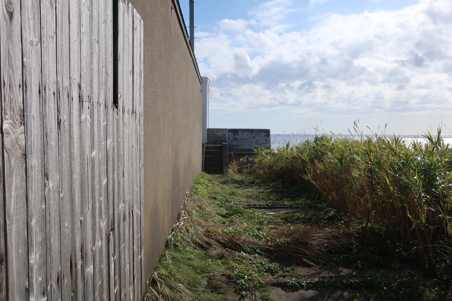 うろうろ(おろおろ)していたところ、隣の建物(上の写真の左端)との狭間に、「道かも?」と思えるものを見つけた。