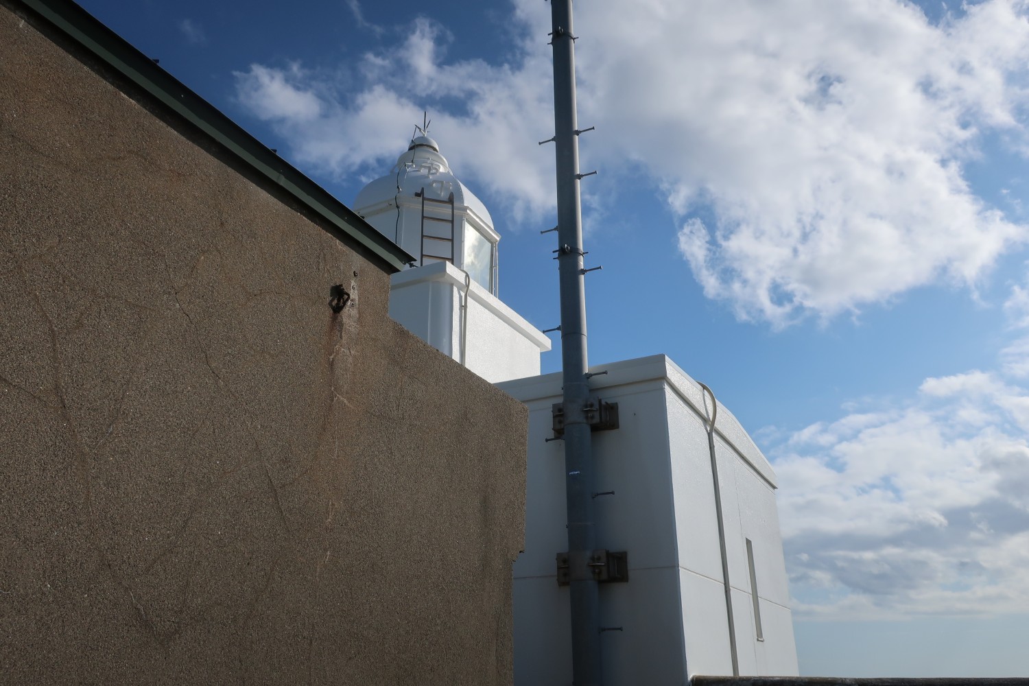 建物と灯台の間が狭いので、うまく灯台を撮ることができない。