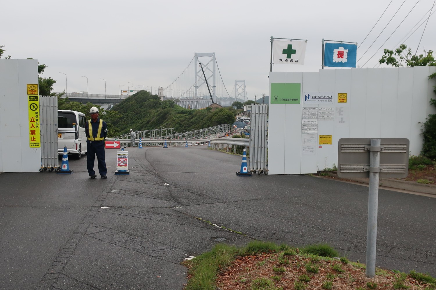 現地に行く何日か前に、灯台と同じ場所にある「道の駅 うずしお」が工事中であることはわかっていた。ひょっとして灯台には近づけるかもしれないと思い、念のため行ってみたのだが、やっぱりダメだった。