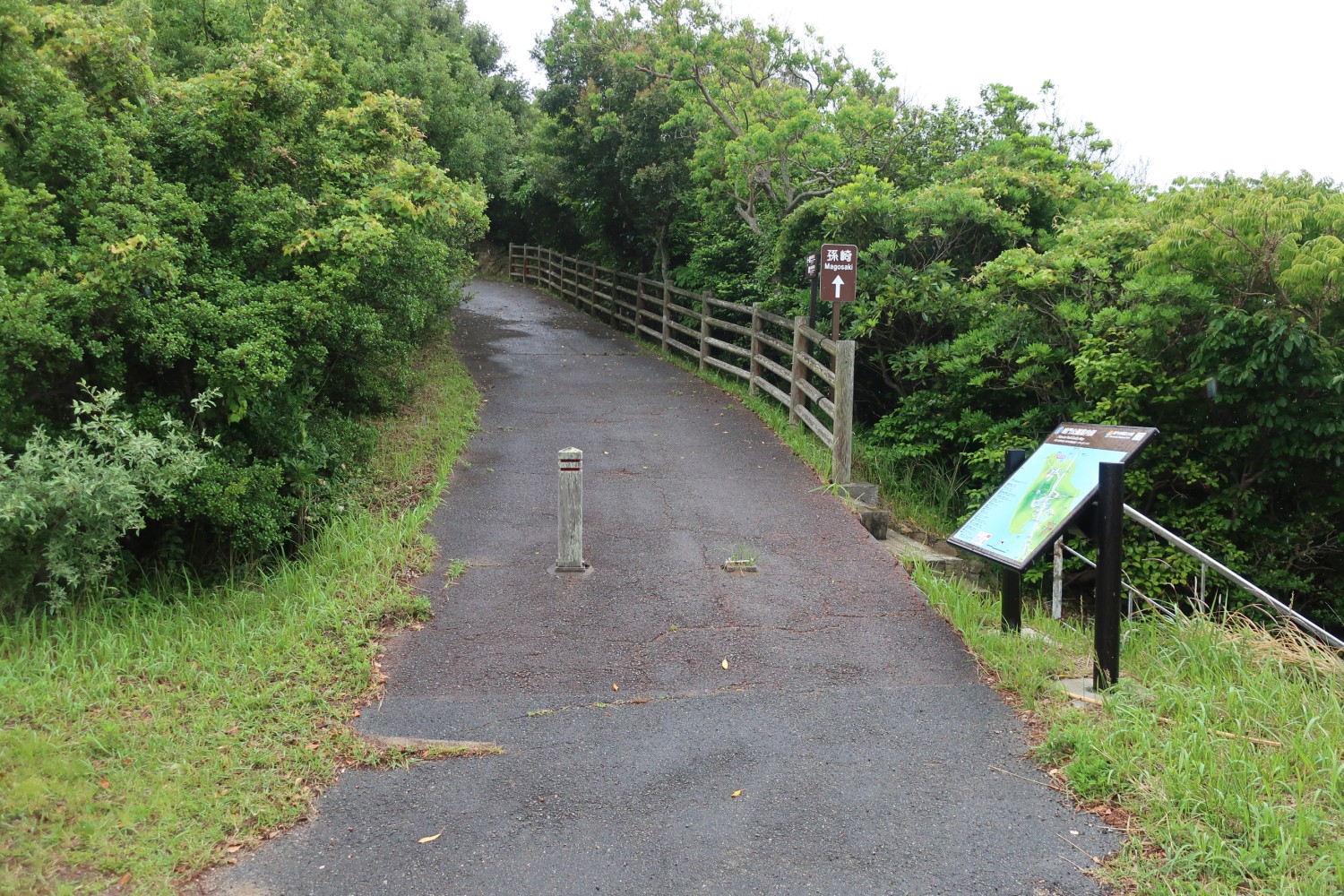 孫埼灯台への道は、鳴門海月というホテルの脇を通り、駐車場の先に入口がある。