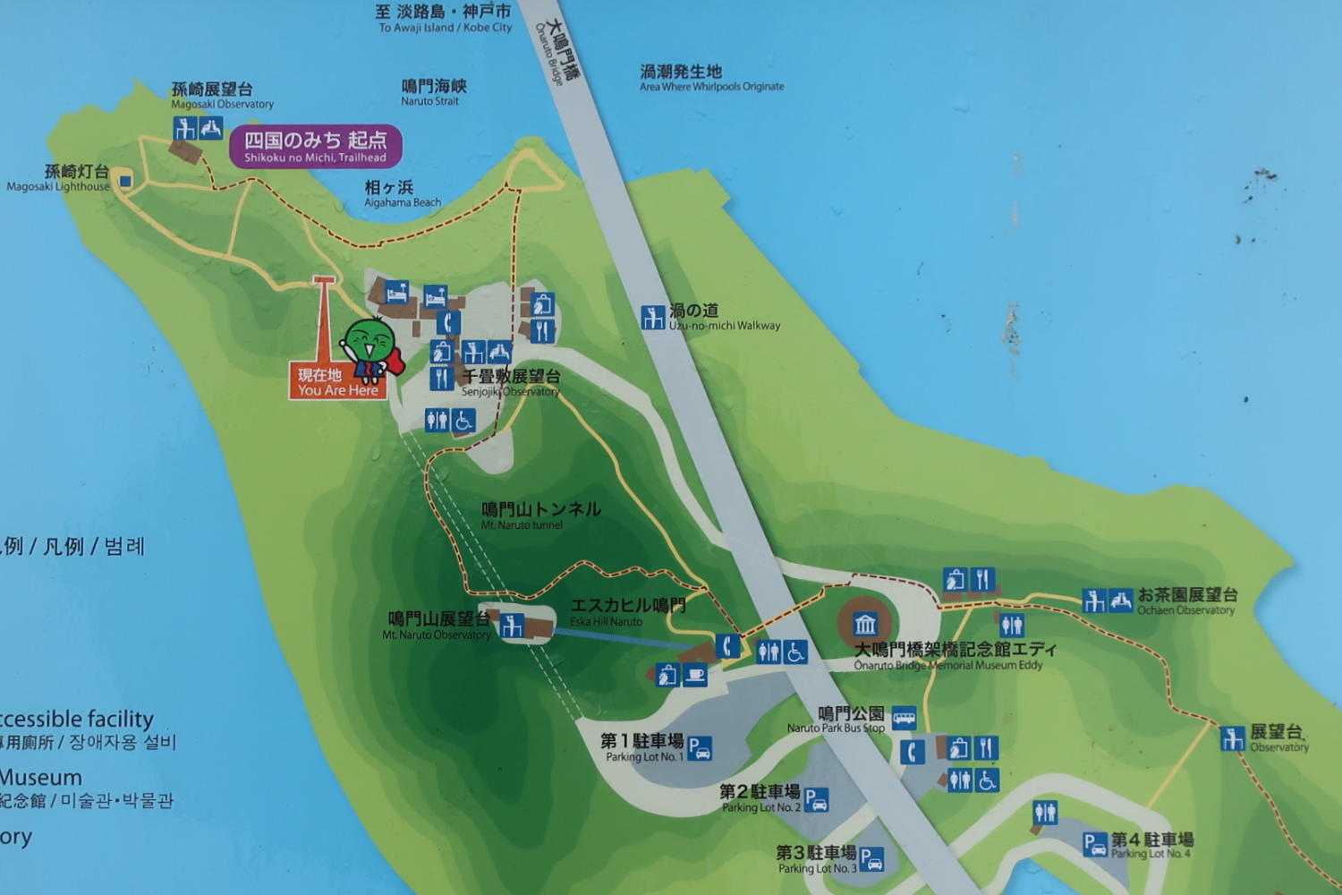 もっと近くにいいビューポイントがある。上の写真にも見えている大鳴門橋だが、道路の下に「渦の道」という遊歩道があるのだ。
