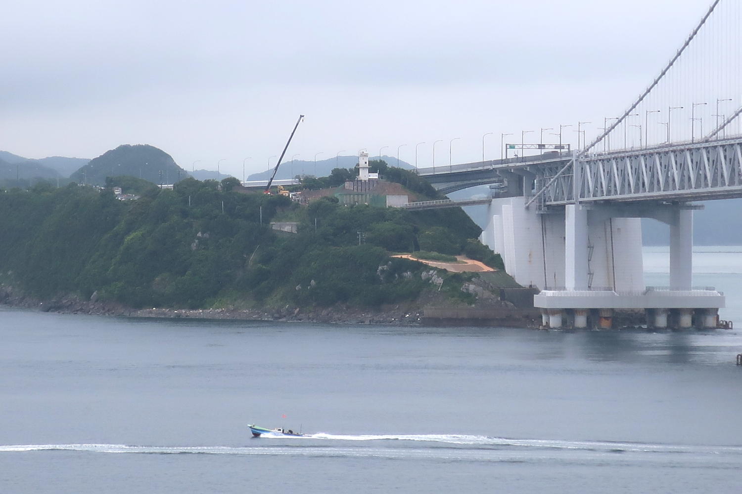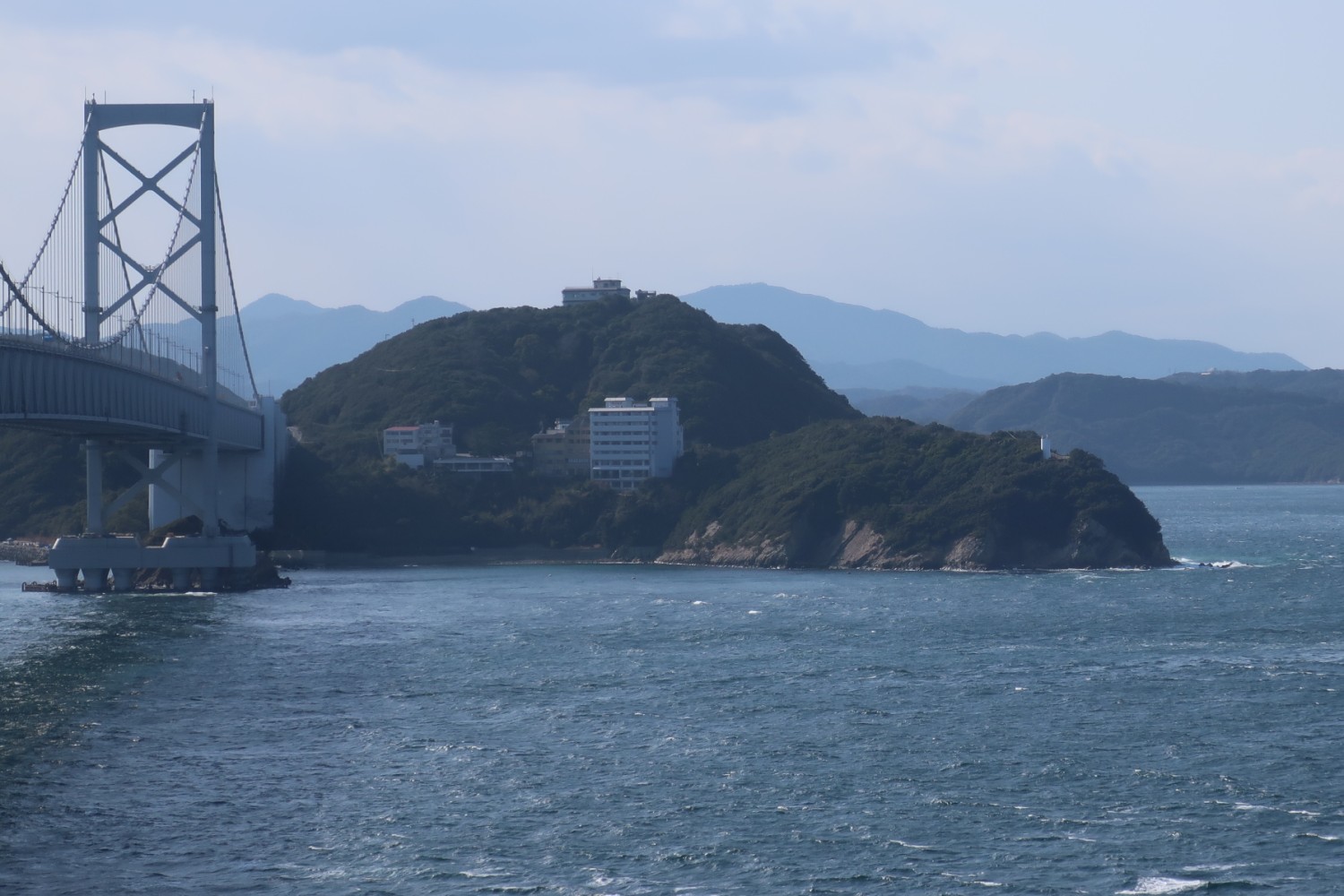 今回は天気がいいので、孫埼灯台のある徳島側の大毛島がよく見える(が、右にある灯台が写真ではわかりにくい)。
