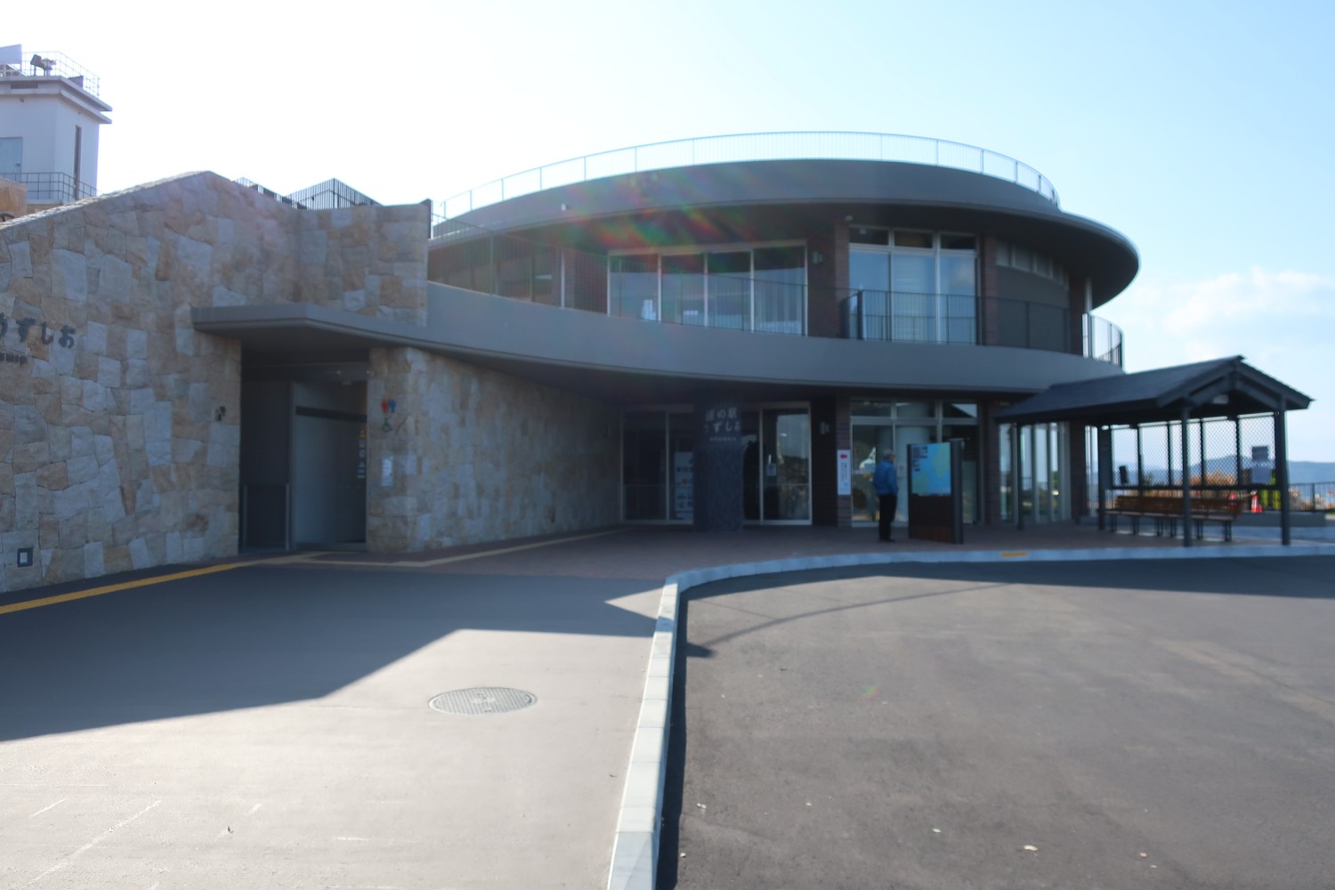 これが新しい道の駅の建物(灯台が半分しか写っていなかった)。この日は週1回の定休日で中に入れず。