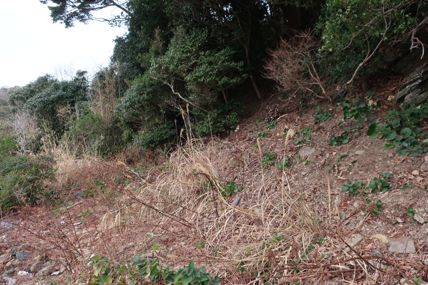 枯草で、足を置けるかどうかがよく見えない。草が生い茂る夏前後に来たらどうなっているんだろうか。1本トゲのある木があったし、手袋はお勧めしておく。