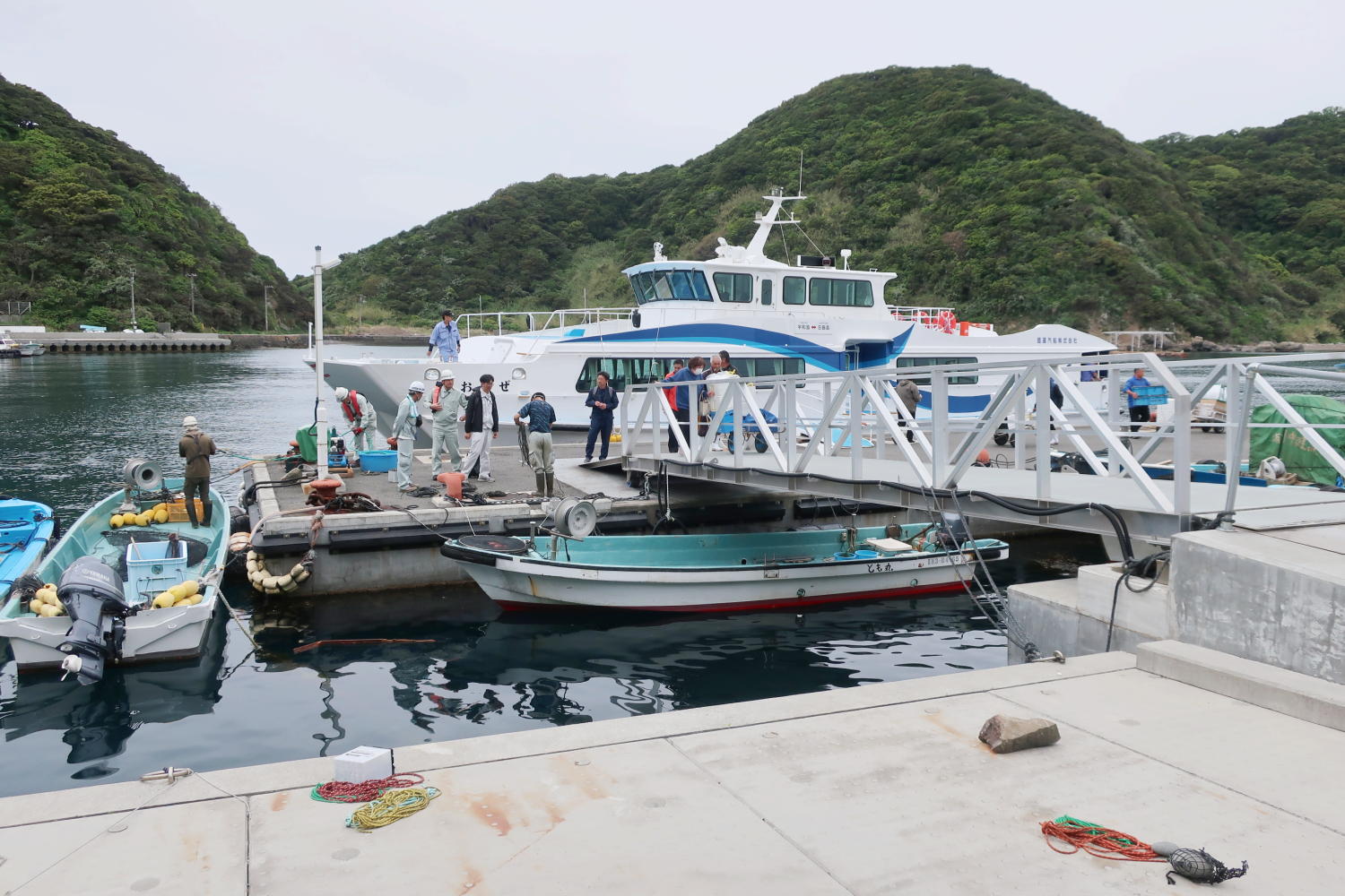 能登港に到着した。人が多いのは、翌週に予定されている桟橋補修工事のためのようだ(この工事の日だったら能登での乗り降りができなかった、いろいろ運がよかった)。