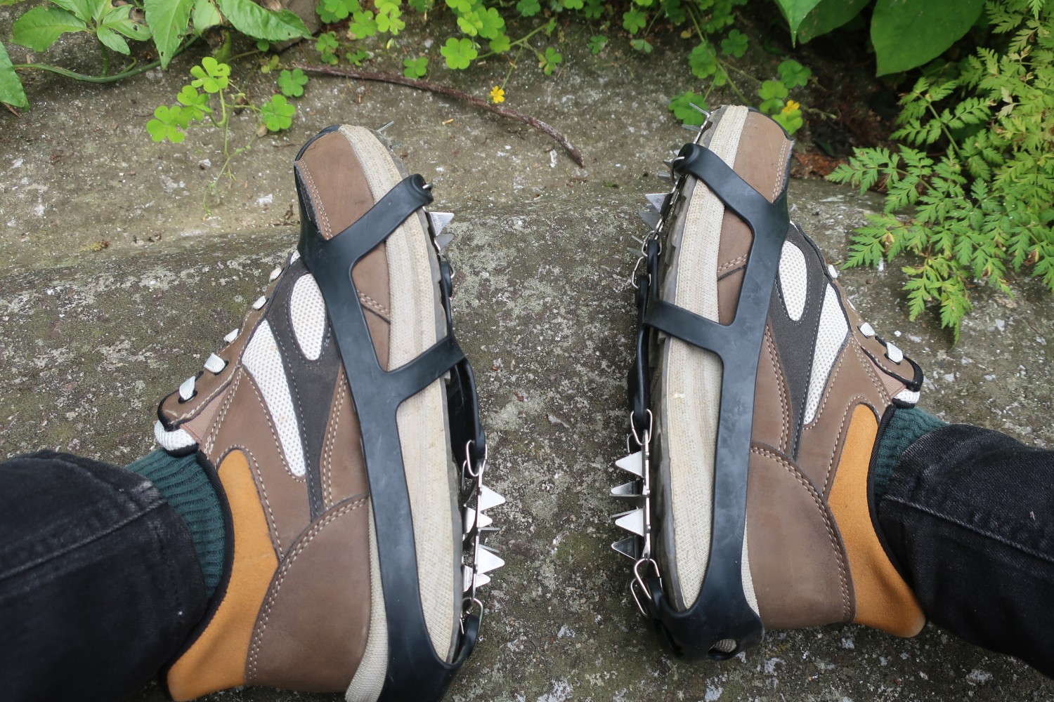 先人のみなさんのおかげで(いつもありがとうございます)、こののぼりがわかっていたので、用意したアイゼンを装着。