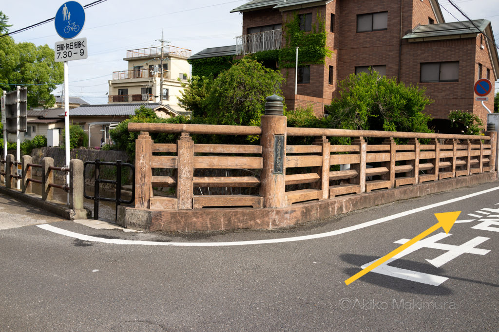 梅谷交差点付近、以前は井関川を越える橋が架かっていた。橋梁跡のようなものがあるのかないのか、事前の調査でははっきりしなかったので、そのまま北上していく。